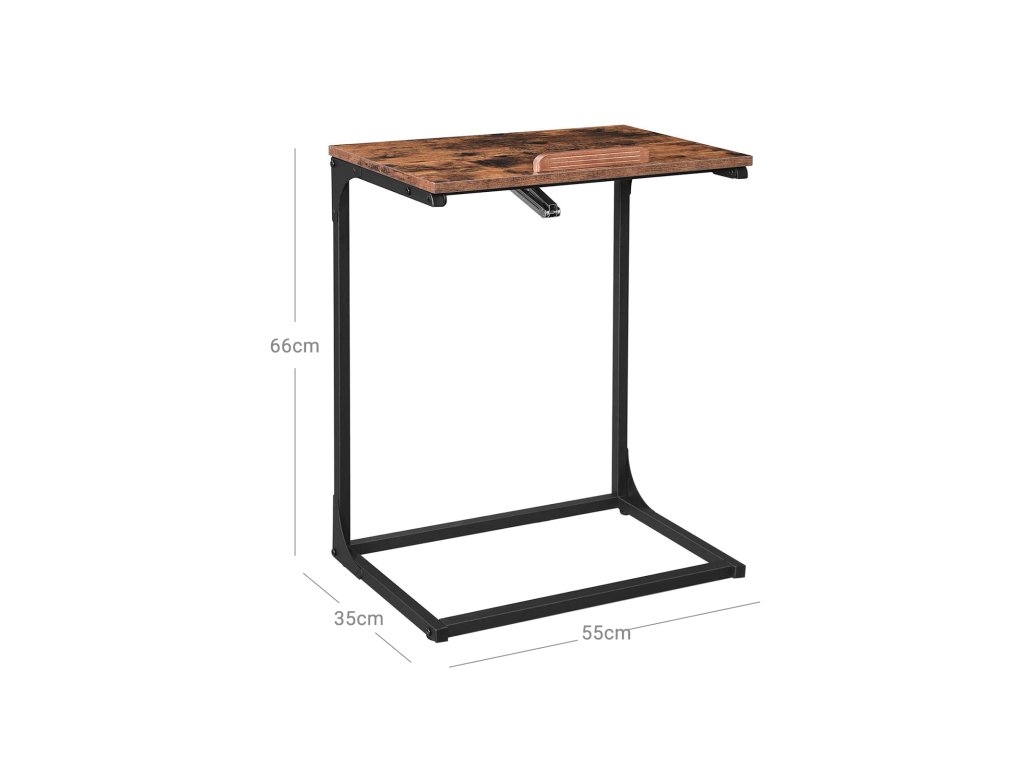 Vždy připraven k použití: Někdy pracujete s notebookem a někdy s tabletem? Díky výklopné desce stolu můžete tento boční stolek přizpůsobit každé situaci. Můžete ji také nechat ležet a vychutnat si pohodlnou snídani na pohovce.Dva v jednom: Kdo říká, že funkční kus nábytku nemůže být krásný? Tento praktický odkládací stolek má nejen velkou výklopnou desku. ale díky svému příjemnému rustikálnímu vzhledu dodá jedinečný nádech i obývacímu pokoji.Váš notebook je dobře podporován: Rozlučte se s vikláním při každém stisku tlačítka, když píšete na klávesnici! Tento stůl je stabilní díky ocelovému rámu, dřevotřískové desce a nastavitelným nohám. i když píšete trochu energicky.Stačí imbusový klíč: A ten je součástí balení! Nepotřebujete žádné další nářadí, stačí postupovat podle jasných pokynů a očíslovaných dílů. a vy už budete sedět na pohovce a pracovat na své zprávě s pomocí nového stolku.Co získáte: Stůl na notebook o rozměrech 55 x 35 x 66 cm v jedinečném industriálním stylu kolekce ALINRU od společnosti VASAGLE a s naklápěcí konstrukcí pro udržení správného držení těla i při práci na pohovce.| Kategorie: | Odkládací stolky |