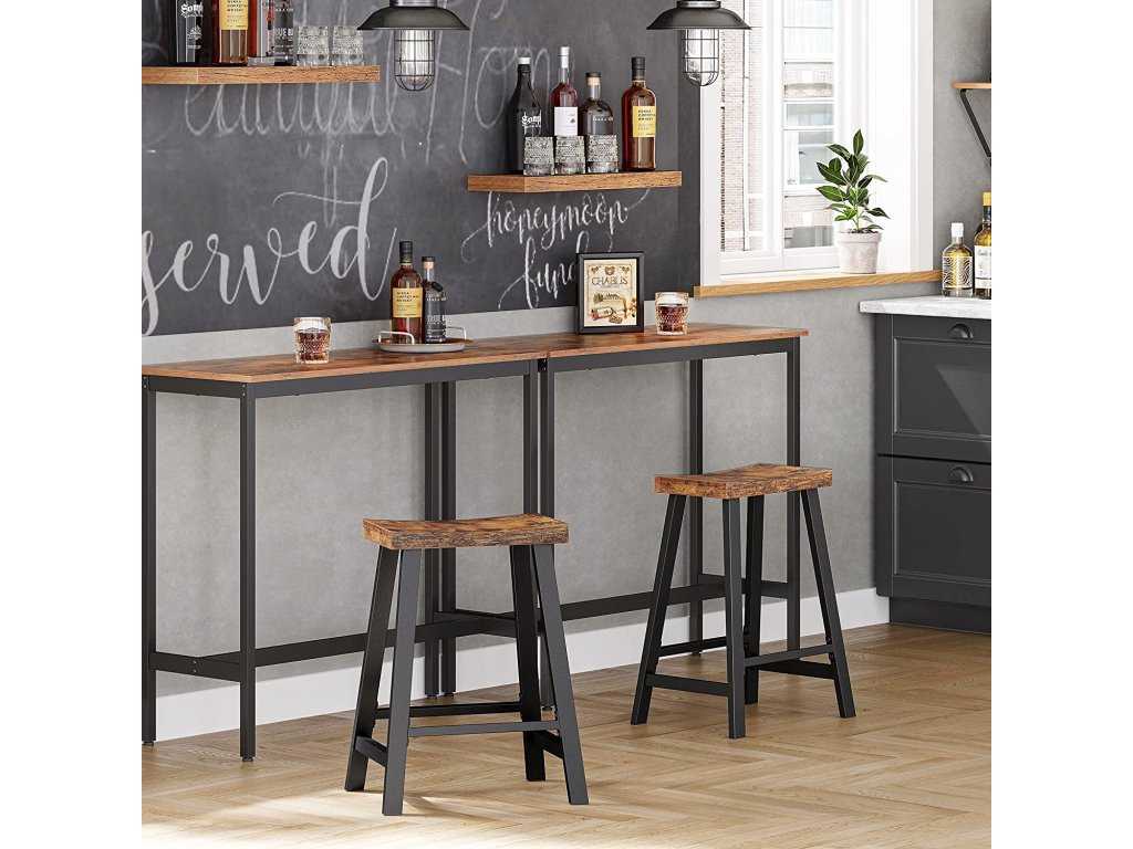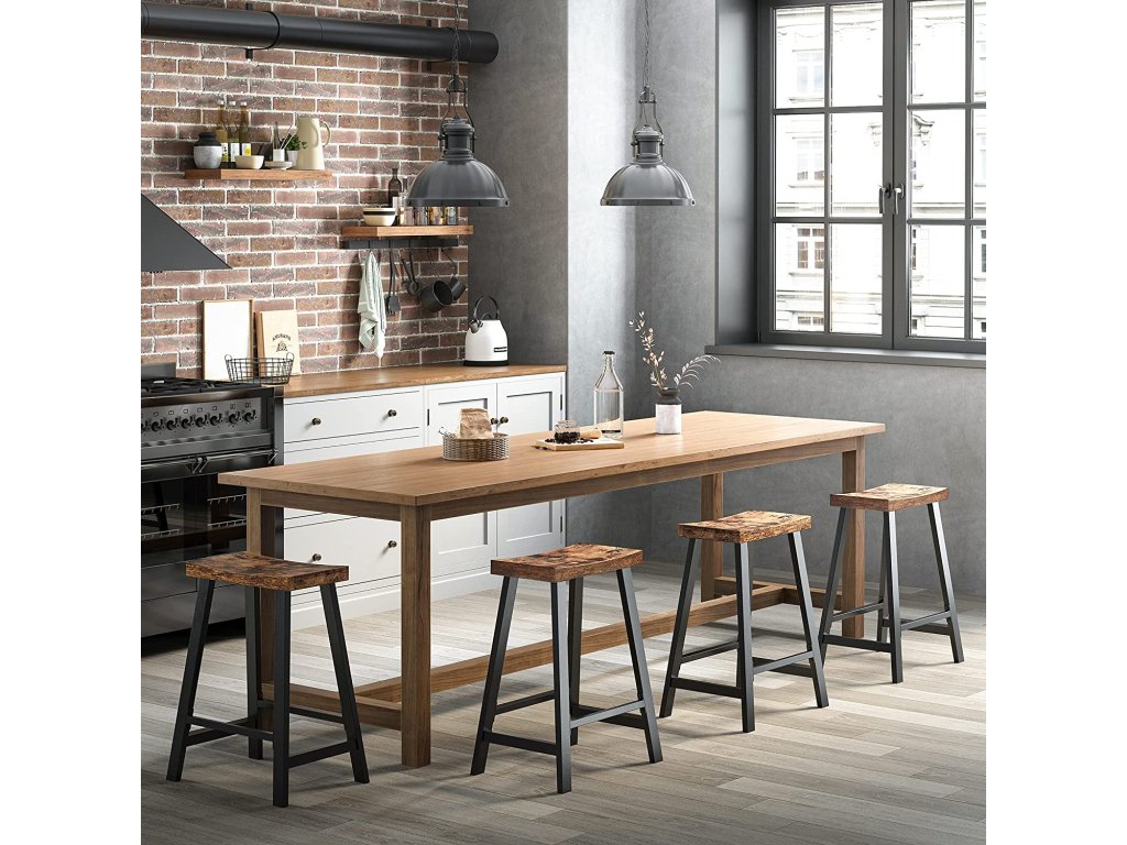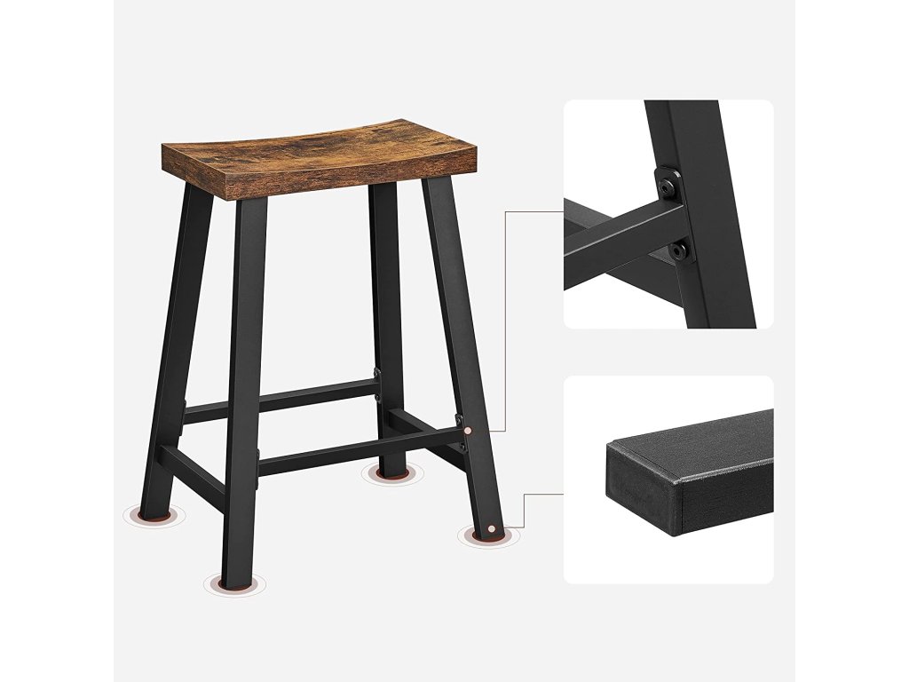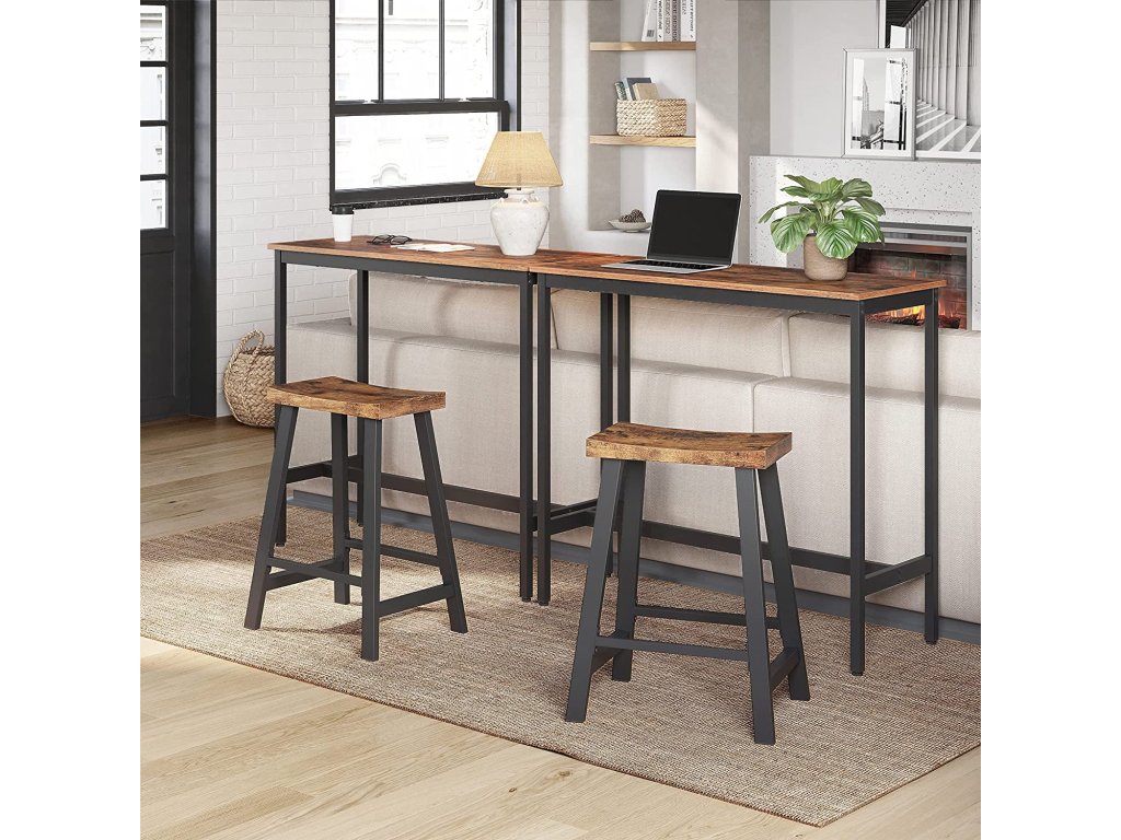 Doprovází vás po mnoho let: překližka v kombinaci s ocelovým rámem nabízí vysokou úroveň robustnosti. A co víc? Kombinace hnědé a černé barvy dodá vašemu domovu kouzlo, které nikdy nevyjde z módy!.Praktické: 60 cm vysoké barové židle se hodí k většině vysokých stolů a kuchyňských ostrůvků. Doplňte svůj barový koutek touto sadou stoliček a užijte si chvíle odpočinku.NASTAVENÍ ZA 15 MINUT - K sestavení této sady barových stoliček potřebujete pouze 15 minut. Díky tomu můžete do svého pokoje vnést krásu, pohodlí a industriální půvab - vytvoříte tak více za kratší dobu.