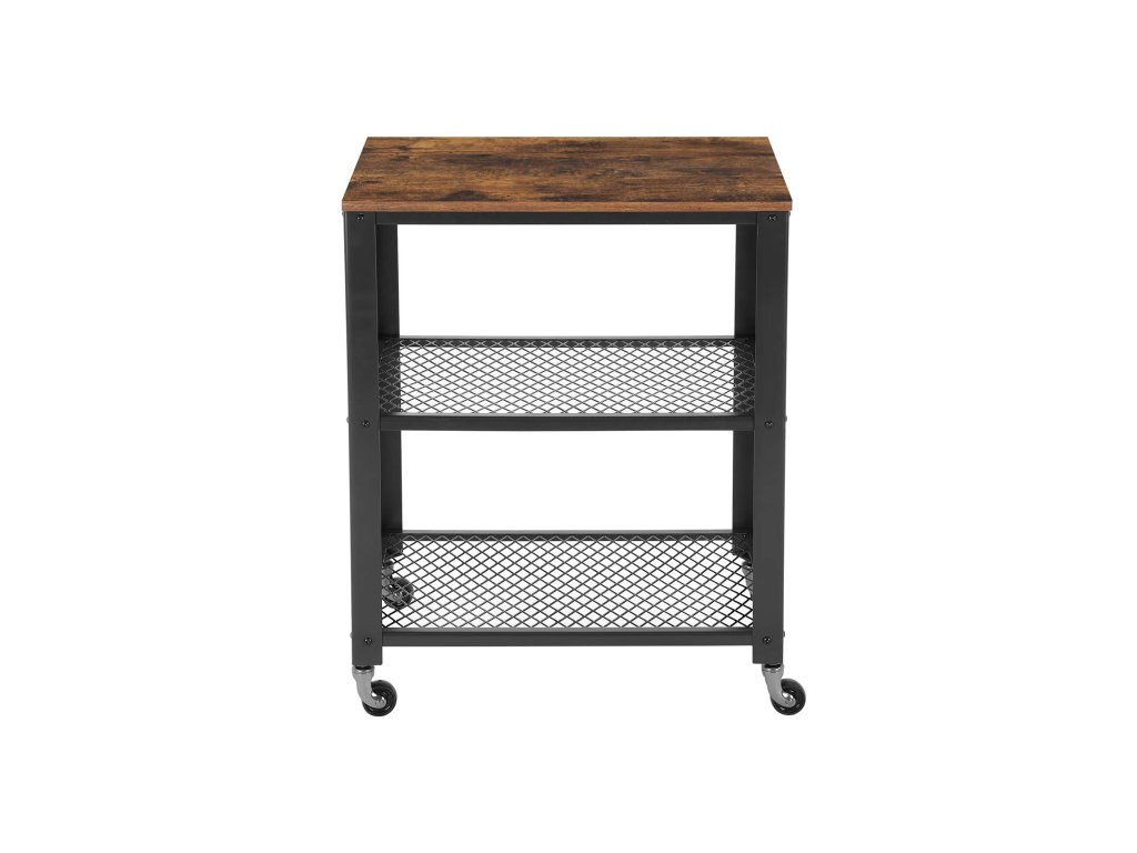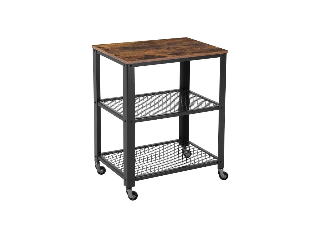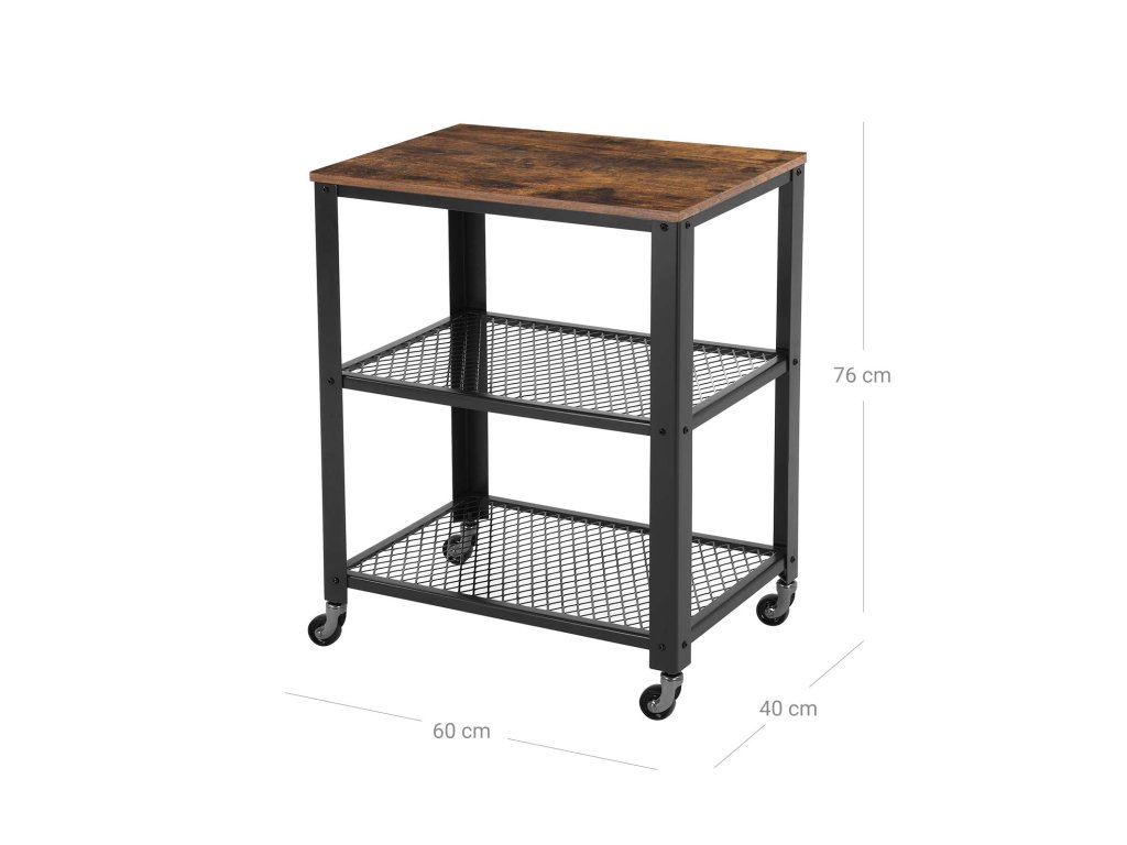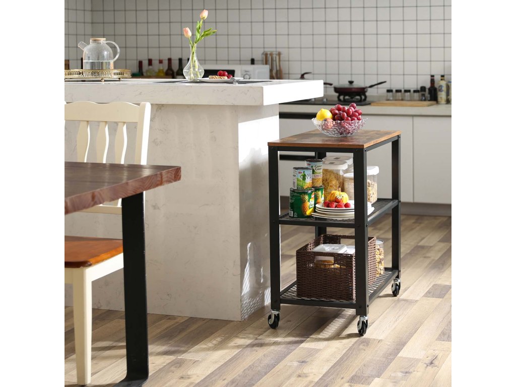 Servírovací vozík, průmyslový kuchyňský vozík na kolečkách, těžký úložný organizér, na kolečkách, do kuchyně a obývacího pokoje, rustikální hnědá.