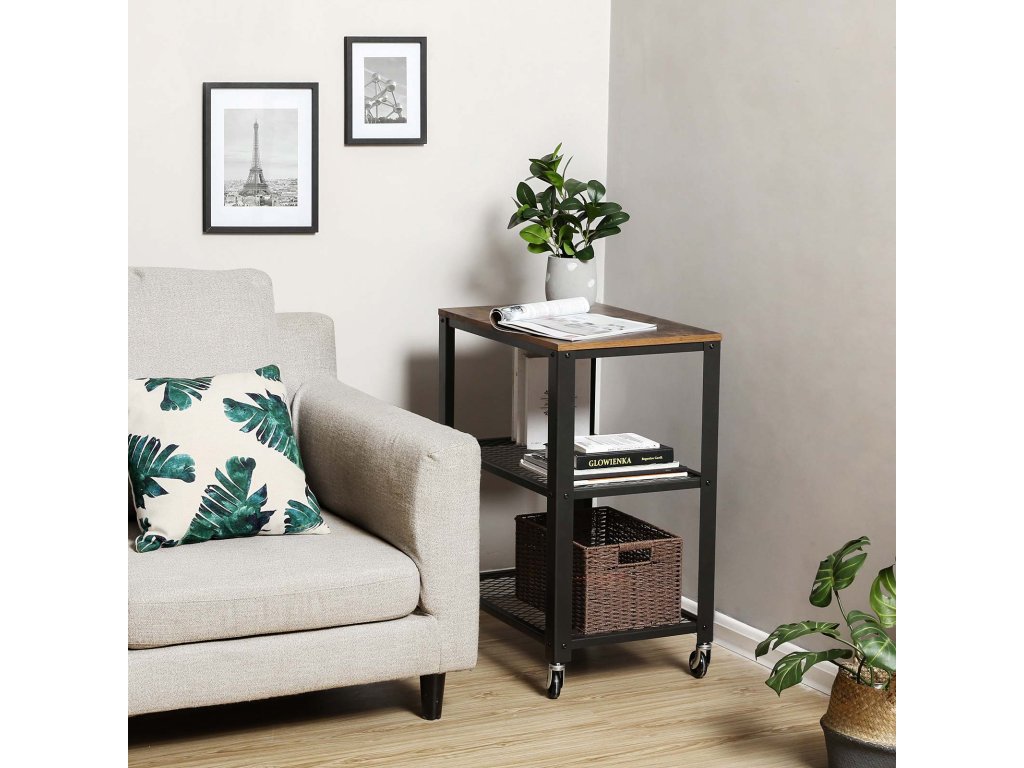 Odolné a stabilní: Dřevotřísková deska s dřevěnou strukturou, šetrná k životnímu prostředí: odolná proti vodě a opotřebení, dlouhá životnost; silný kovový rám je robustní pro uložení knih, časopisů a notebooku.Klasický vzhled: Industriální styl s jednoduchou konstrukcí vytváří atraktivní a moderní vzhled; dobře se hodí k vašemu osobnímu vkusu a interiéru.Prostorný úložný prostor: třípatrový úložný vozík poskytuje velký úložný prostor a zároveň šetří podlahovou plochu; skvělé úložné řešení pro malou kuchyň.Vše pro vaše pohodlí: Pokud chcete, aby vozík zůstal stále na jednom místě, stačí připevnit nastavitelné nožičky.Všestranný vozík: Udržujte vše od knih až po kuchyňské potřeby uspořádané a po ruce, ideální do kuchyně, obývacího pokoje a ložnice.| Kategorie: | Servírovací stolky |