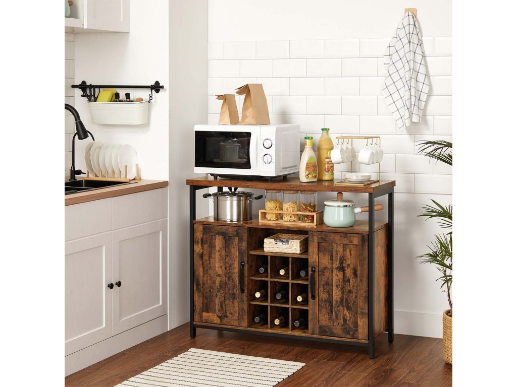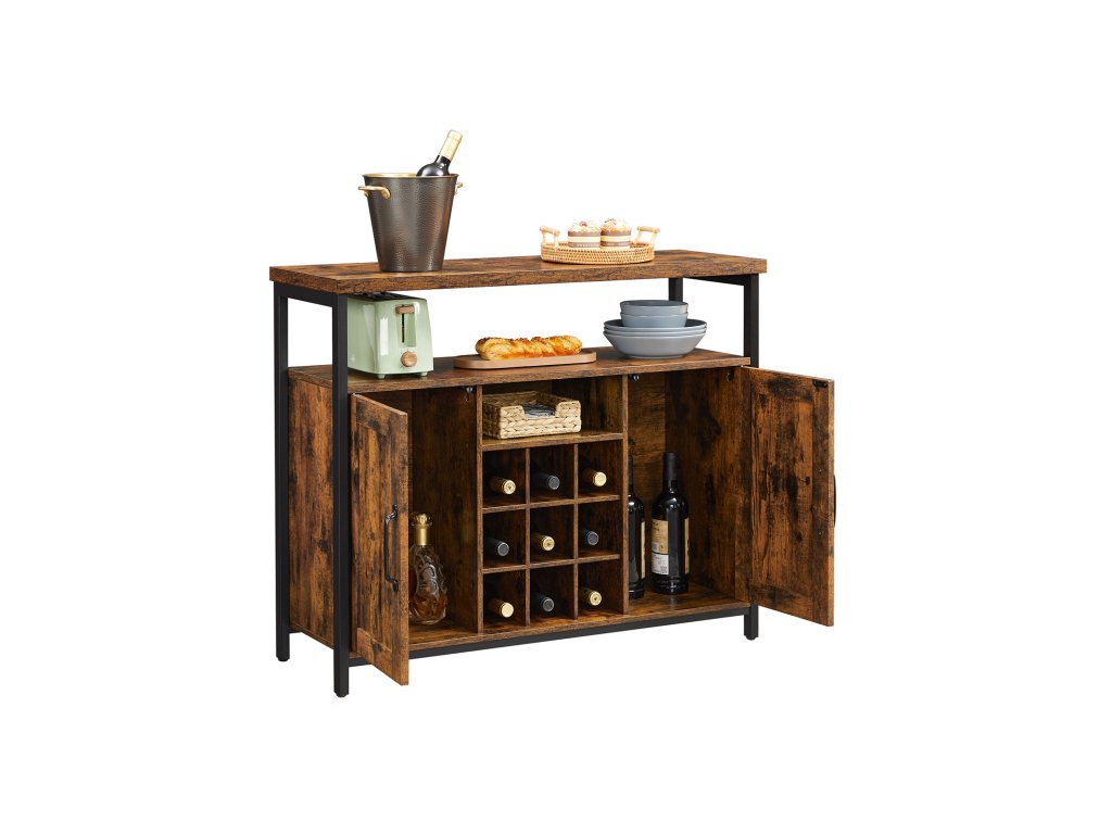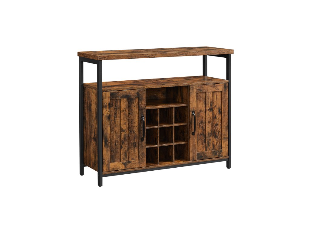 Skříňka, příborník a bufetový stůl s držákem na víno, dvoudveřová skříňka do jídelny, obývacího pokoje, kuchyně, 100 x 35 x 81,4 cm, hnědo-černá.