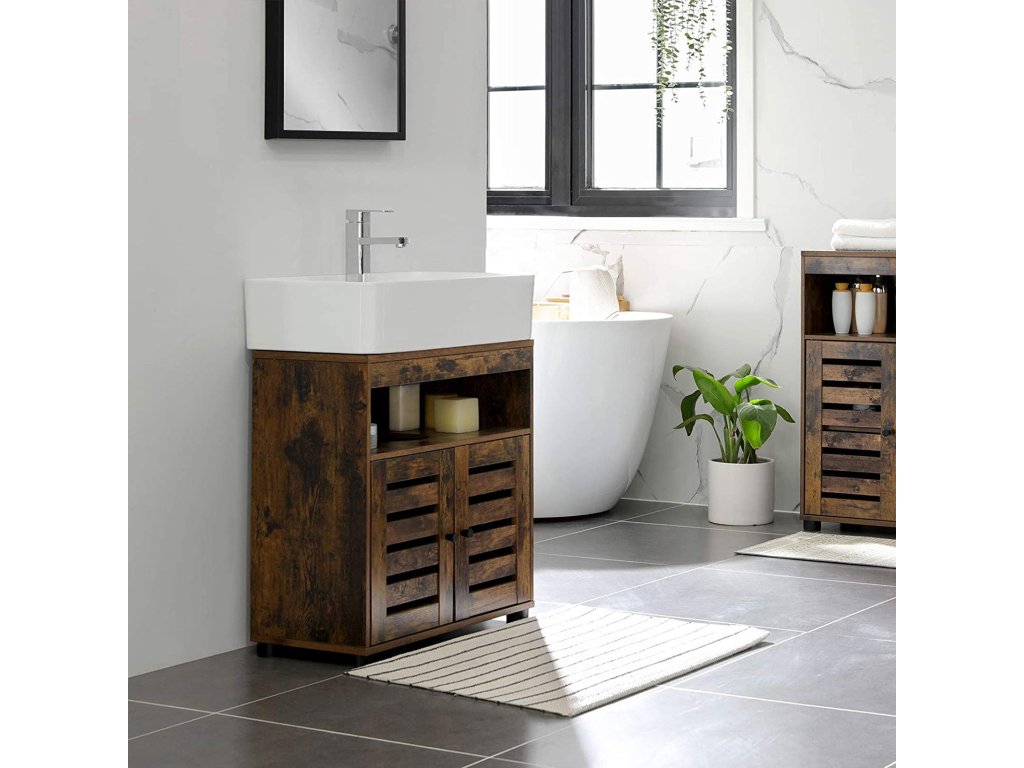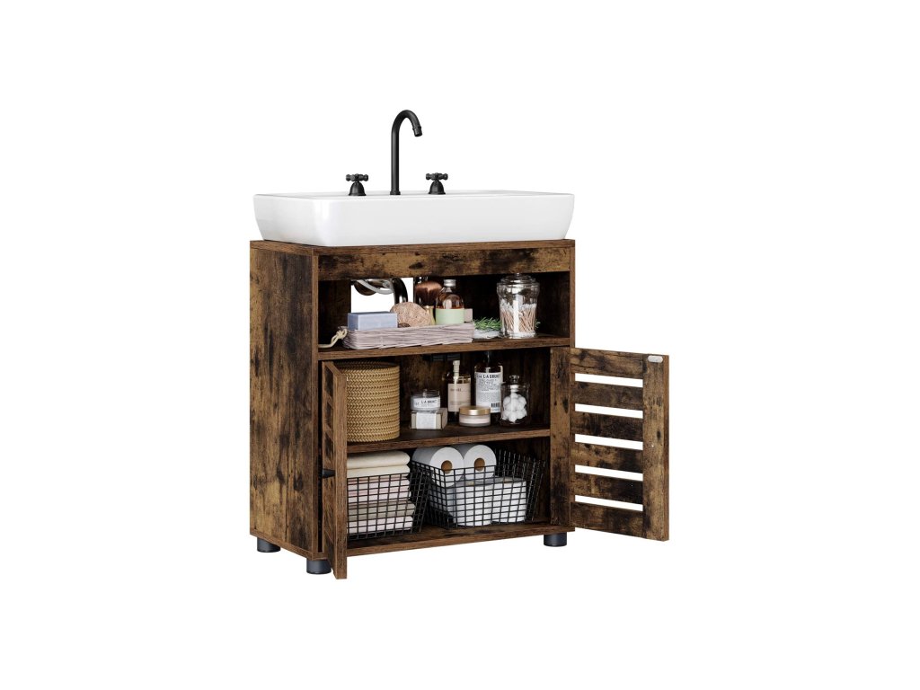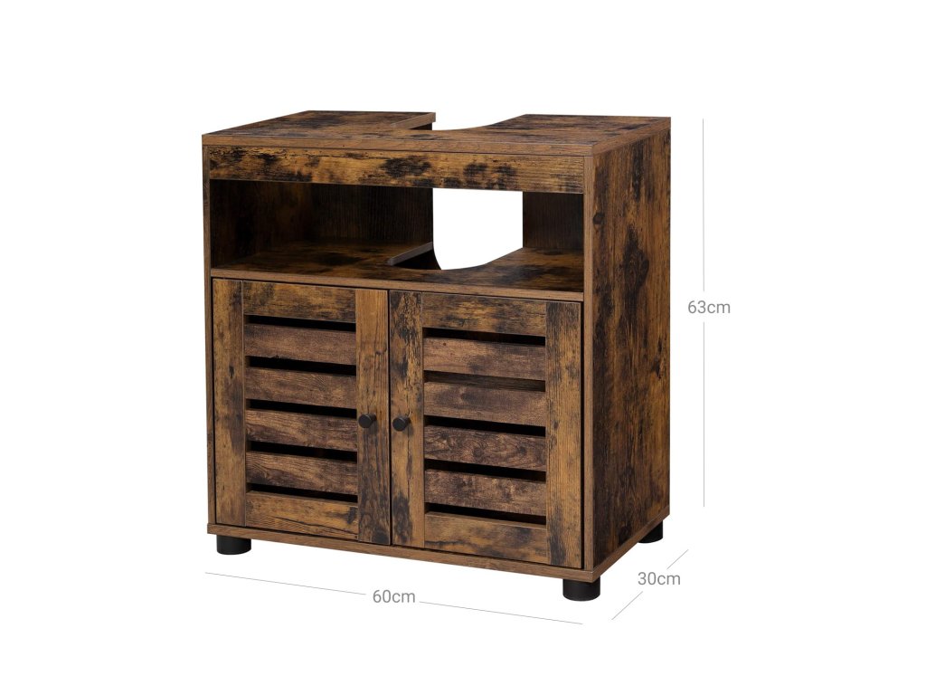 Skříňka pod umyvadlo, koupelnová skříňka, úložná skříňka, 60 x 30 x 63 cm, se 2 dvířky, nastavitelná police, rustikální hnědá.