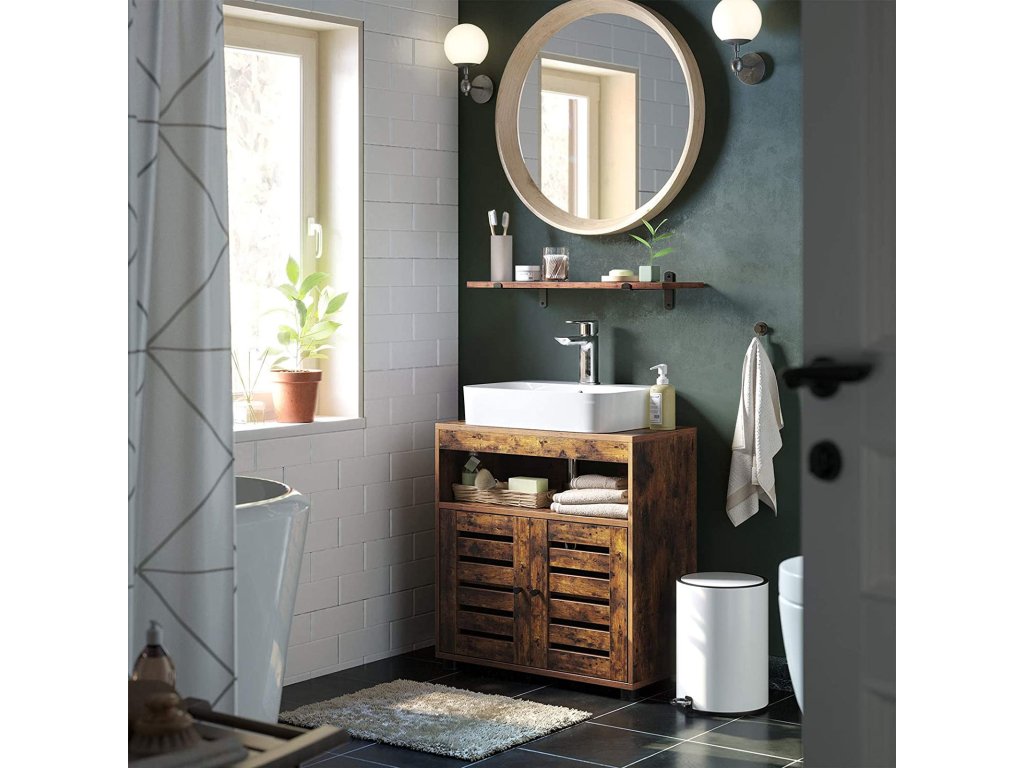 Rustikální v koupelně: A proč ne? Je to nejlepší způsob, jak do koupelny vnést velkou dávku nadčasového šarmu a charakteru. S touto hnědou skříňkou pod umyvadlo s rustikálními akcenty bude vypadat jako žádná jiná!.Prodloužená životnost: Vysoce kvalitní dřevotřískové desky, nastavitelné nohy a sada proti překlopení - to je důvod, proč je tento nábytek stabilní, pevný a odolný v průběhu času!Úložný prostor pod dřezem: Délka x šířka x výška: 20 x 15 x 31,5 cm, velikost sifonu je 60 x 30 x 63 cm. Umístění této toaletní skříňky do koupelny znamená prozkoumat dosud neobsazený prostor pod umyvadlem.Uvnitř, venku Nahoře: Tato skříňka pod umyvadlo má uvnitř skříňku s nastavitelnou policí se třemi výškovými možnostmi, do které se schovají hygienické toaletní potřeby, a otevřenou přihrádku, kde snadno najdete hřebeny a vystavíte parfémy.Strach ze shromáždění? Nemusíte se bát! Tato koupelnová skříňka je dodávána se srozumitelným ilustrovaným návodem a očíslovanými díly. Proměnit koupelnu v místo, které je pro vás jako stvořené k odpočinku, nebylo nikdy jednodušší.