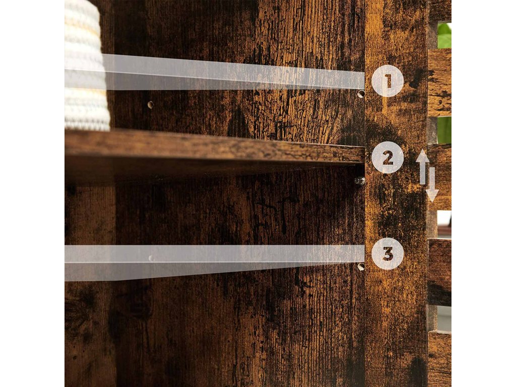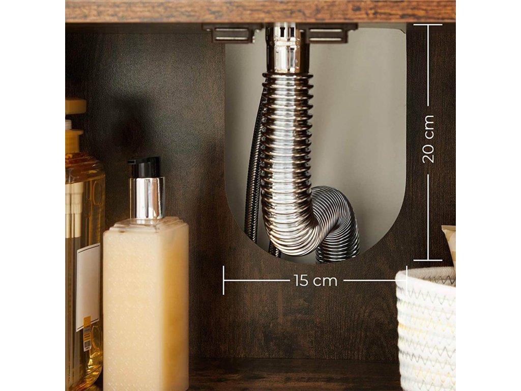 Rustikální v koupelně: A proč ne? Je to nejlepší způsob, jak do koupelny vnést velkou dávku nadčasového šarmu a charakteru. S touto hnědou skříňkou pod umyvadlo s rustikálními akcenty bude vypadat jako žádná jiná!.Bude vám tato koupelnová skříňka sloužit dlouho? Ano samozřejmě! Tato skříňka pod umyvadlo je vyrobena z robustní dřevotřísky a je vybavena nastavitelnými nožičkami a praktickou sadou proti převrácení - tento kus nábytku vás bude těšit dlouho!