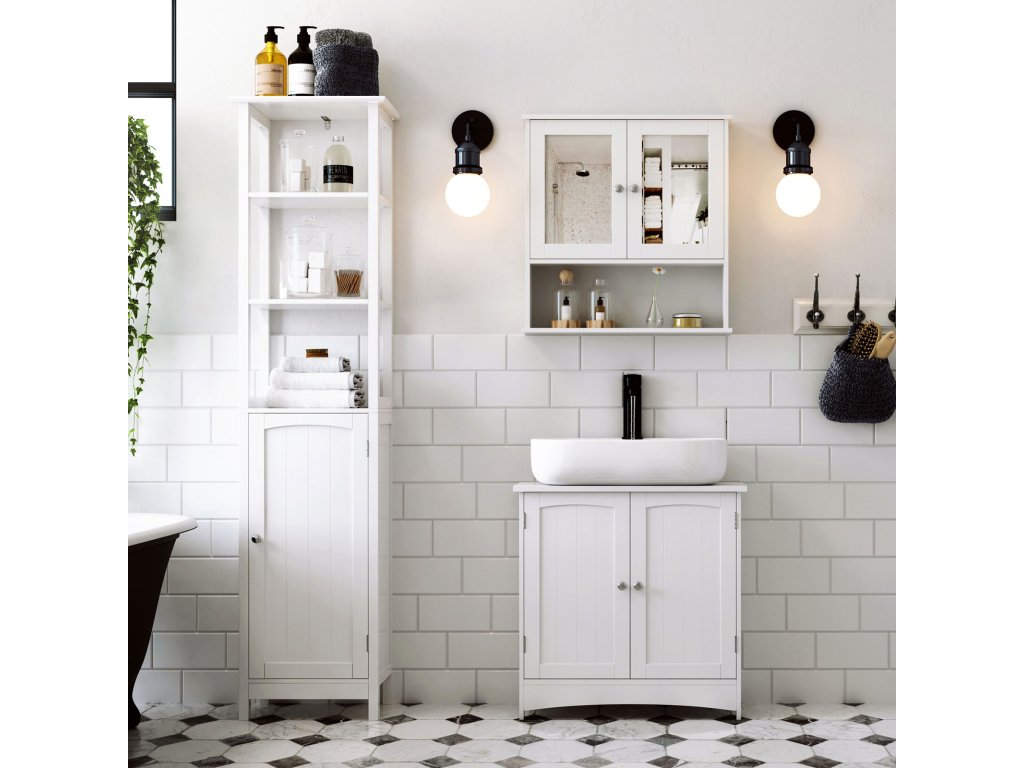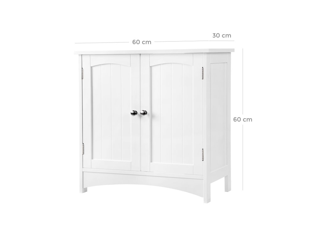 Skříňka pod umyvadlo, koupelnová podlahová skříňka se 2 dvířky a nastavitelnou policí 60 x 30 x 60 cm, bílá.