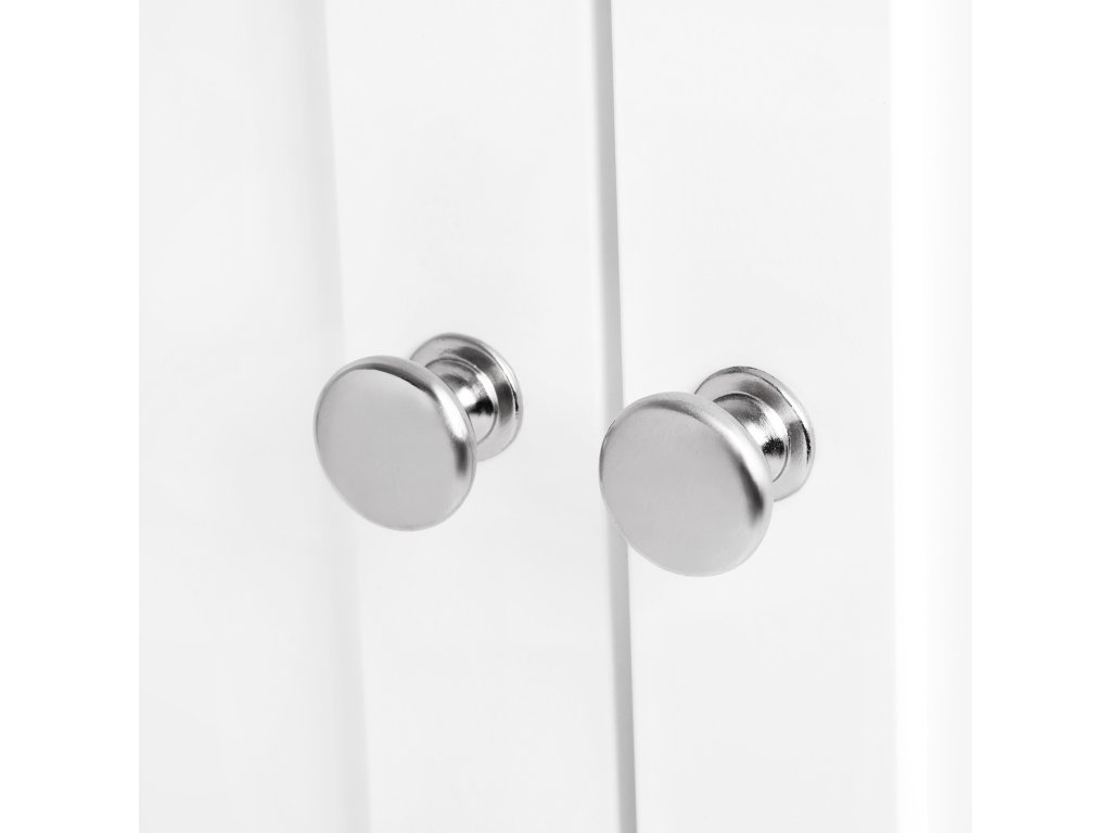 Matné přihrádky za dvojitými dveřmi otočnými o 180° s chromovanými kovovými úchyty - ručníky, mycí prostředky, toaletní papír a další koupelnové doplňky lze uložit chráněné před prachem, vodou a zvědavými pohledy. Tímto způsobem jsou pokryty i nevzhledné trubky.