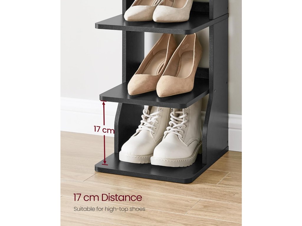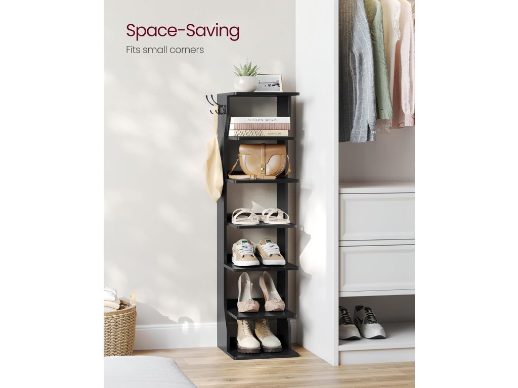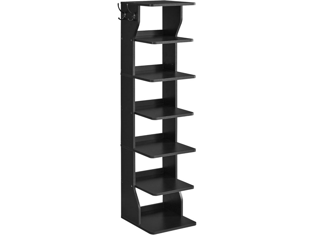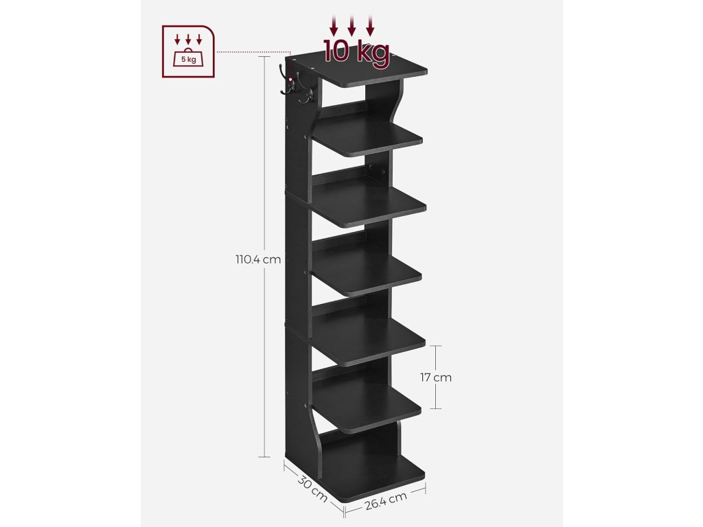 Úzký organizér na boty, 6-patrový stojan na boty, pro malé prostory, předsíně, šatny, černý.
