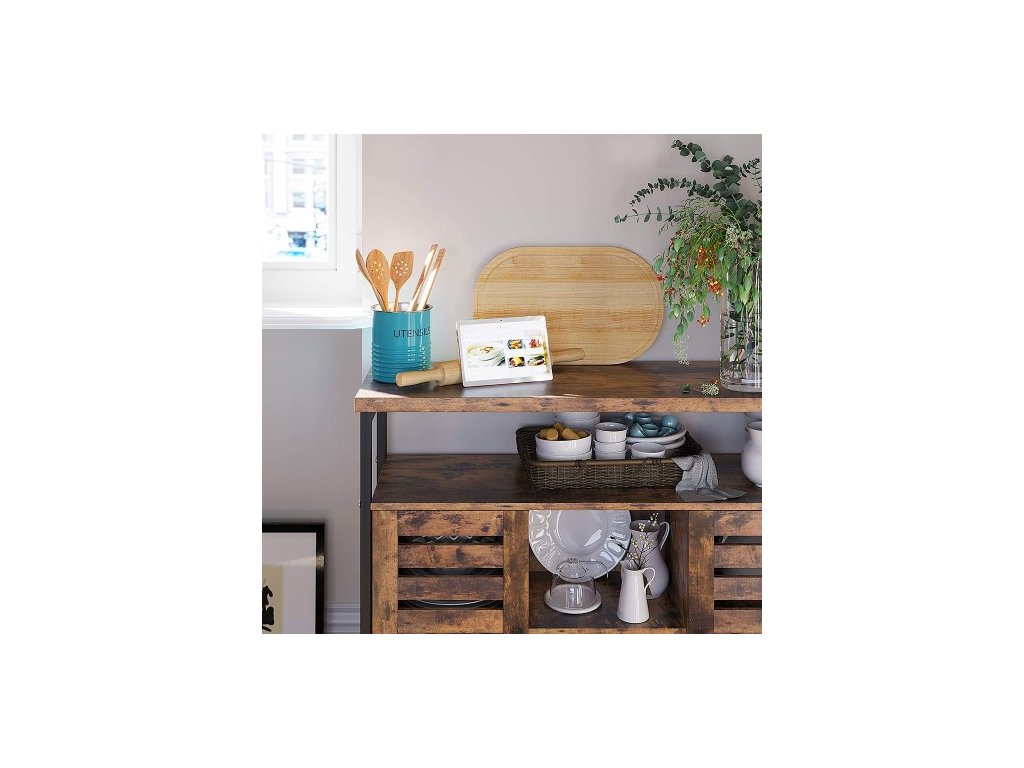 VŠUDE OKOUZLUJÍCÍ: Tato okouzlující úložná skříňka s industriálními akcenty a rustikálními hnědými tóny vytváří teplý a příjemný vzhled, takže je ideální pro vytvoření elegantní přistávací plochy ve vstupní hale. jídelna, obývací pokoj a dalšíPROSTOR PRO VŠECHNY: S prostornou deskou, 1 velkou otevřenou policí, 2 otevřenými přihrádkami a 2 nastavitelnými policemi skrytými za 2 klasickými žaluziovými dvířky. v této prostorné podlahové skříňce je spousta úložného prostoru pro dekorace, kuchyňské potřeby a další věci.Jednoduché jako koláč: Doby, kdy jste museli trávit hodiny sestavováním nábytku, jsou dávno pryč; díky přehledným návodům a očíslovaným dílům můžete mít tuto kuchyňskou skříňku připravenou dříve, než vyndáte pizzu z trouby;Rovné a rovné: Viklavé skříně nejsou dobrým úložným prostorem; vneste do svého života stabilitu s naší podlahovou skříňkou s nastavitelnými nožičkami, která dokáže udržet vše v rovině i na mírně nerovné podlaze;CO ZÍSKÁTE: Volně stojící skříňka z kolekce LOWELL od společnosti VASAGLE, 2 vnitřní nastavitelné police, 1 stolní deska, 1 velká otevřená police, 2 otevřené přihrádky, nastavitelné nožičky. a jednoduchý proces montáže| Kategorie: | Komody |