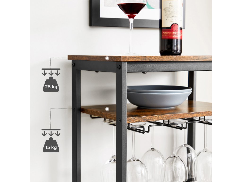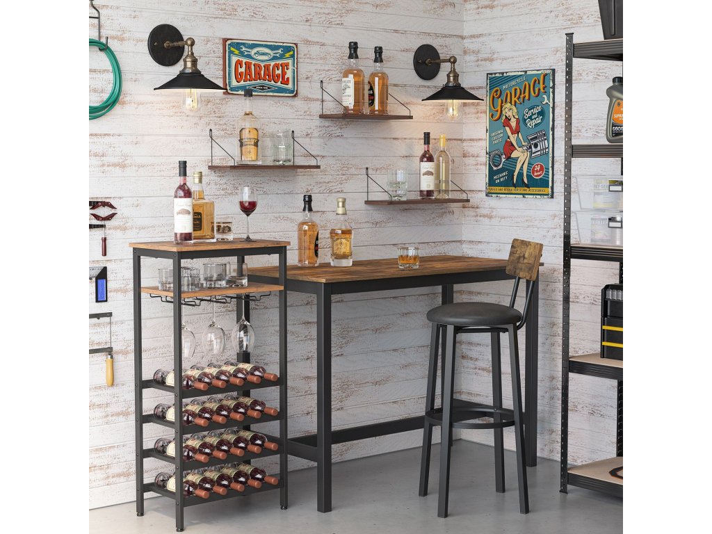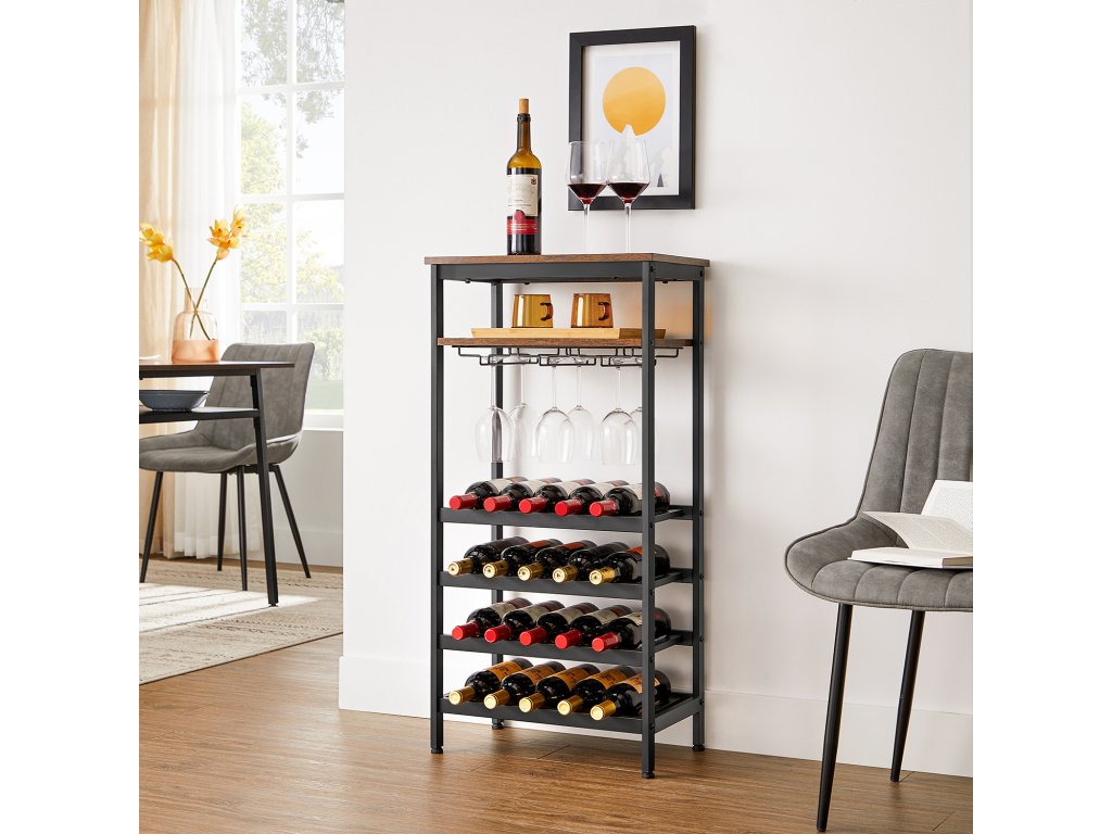 Soukromý vinný sklep: Jaká jsou vaše oblíbená vína? Suché červené, sladké bílé nebo šumivé víno? Tento stojan na víno nabízí 20 otevřených míst, kde můžete vystavit svou sbírku vín. a čtyřúrovňový design umožňuje jejich dobré třídění, ať už podle typu nebo ročníku.Otevřeno 24 hodin denně: Přišel k vám kamarád na skleničku? S tímto stojanem na lahve bude váš osobní bar vždy připraven. Skleničky jsou zavěšeny na 4 držácích a občerstvení na vás čeká na otevřené polici...Vždy vyvážené: Je váš stojan na víno trochu podnapilý a má problém udržet rovnováhu? Ne pro tento držák na víno! Díky nastavitelným nožičkám je vždy stabilní, a to i na mírně nerovných podlahách.Montáž bez stresu: Stejně jako se nemůžete dočkat, až ochutnáte své víno, nemůžete se dočkat, až svou hrdou sbírku vystavíte na stojanu na víno? Díky jasným návodům a označeným dílům jeho sestavení je hračka - nemusíte dlouho čekat!Trochu více atmosféry: Černý ocelový rám vnáší industriální nádech, rustikální hnědá dřevotříska dodává hřejivou atmosféru. a v tomto stojanu na víno z naší kolekce ALINRU vytvoří romantickou atmosféru - a to vše ještě předtím, než si nalijete víno do sklenice.| Kategorie: | Stojany na víno |