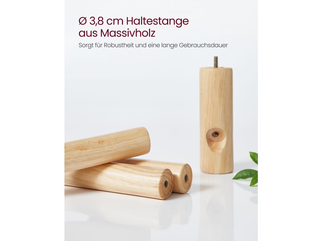 Odolný a osvěžující: Tento věšák je vyroben z masivního dřeva o průměru 3,8 cm a vydrží dlouhá léta. A bílá barva dodá vašemu domovu osvěžující nádechNastavitelná výška pro různé potřeby: Třídílná konstrukce vám umožňuje rozhodnout o výšce věšáku. Pro děti stačí pouze 1-2 sekce, pro dospělé nainstalujte všechny 3 sekce.Stabilní trojúhelníková základna: Stabilita je u věšáku nejvyšší prioritou. Trojúhelníková základna o šířce 47 cm poskytuje pevný základ pro tento věšák, který unese až 15 kg.Úspora místa a pevnost: Tento věšák o rozměrech 47 x 47 x 175 cm se vejde i do úzkých chodeb a unese velké zatížení. Na 8 háčků (nosnost 1,5 kg na jeden háček) lze zavěsit kabáty, tašky a šály.Snadná montáž: Obáváte se složité montáže? Buďte v klidu. Jednoduchá konstrukce, označené díly a srozumitelné pokyny vám pomohou dokončit montáž bez námahy.| Kategorie: | Stojany na oblečení |