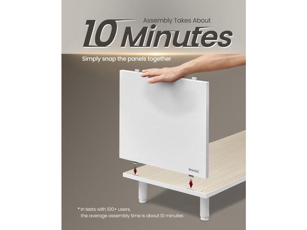 【SUPERRYCHLÁ, NENÁROČNÁ MONTÁŽ】 Tento televizní stojan sestavíte za pouhých 10 minut - bez použití nářadí. Díky vestavěným zámkovým konektorům se panely jednoduše zaklapnou. Rozlučte se s hodinami zdlouhavé montáže nebo tápání s četným příslušenstvím!.