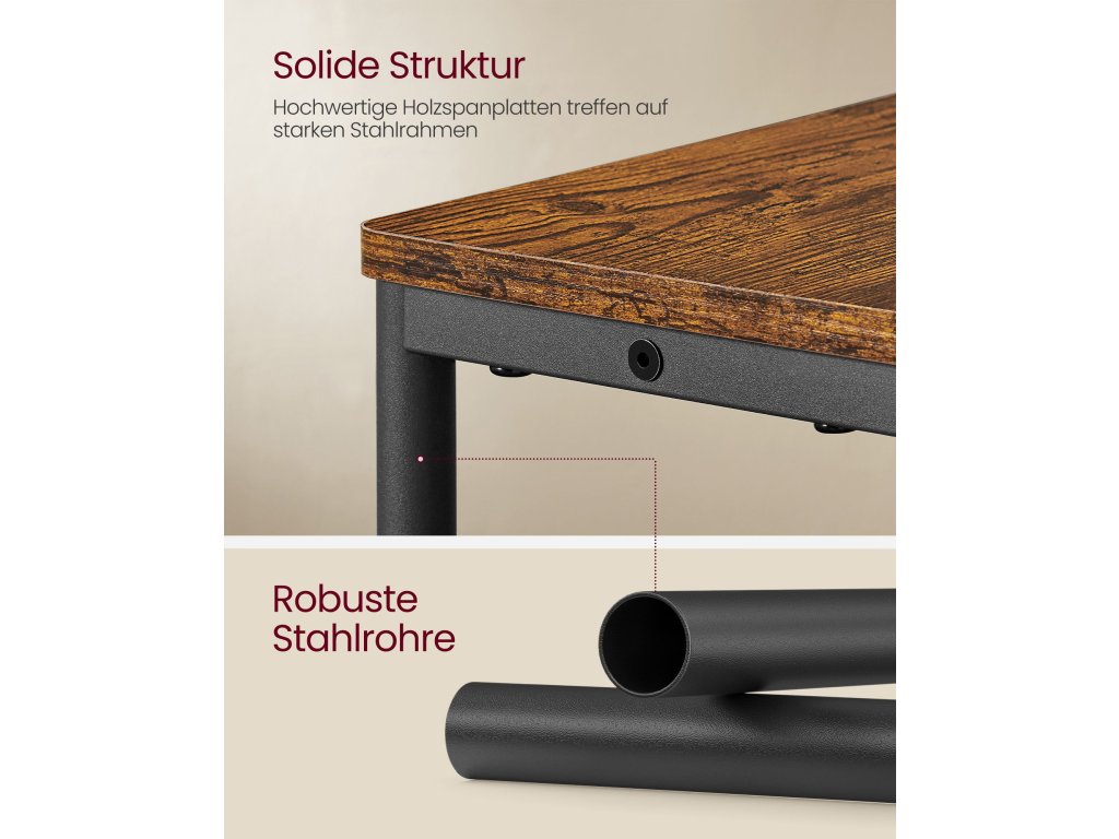 Vhodné pro malé prostory Tento štíhlý třípatrový noční stolek o rozměrech 18 x 45 x 58 cm se dokonale hodí do malých prostor, vedle pohovky nebo postele, a umožňuje tak lepší využití v omezených prostorách.Integrovaná napájecí lišta Tento malý stolek s 1 zásuvkou a 2 porty USB umožňuje nabíjet telefon, tablet a další zařízení současně. Díky 2m kabelu můžete tento stolek umístit, kamkoli budete chtít.Více úložných prostorů Ať už potřebujete stojan na časopisy pro čtení, nebo odkládací stolek na každodenní věci, tento multifunkční noční stolek s tříúrovňovými policemi je pro vás jako stvořený.Robustní a ďábelský Tento boční stolek pro malé prostory s robustním ocelovým rámem a kvalitní dřevotřískovou deskou unese až 100 kg a poskytuje stabilní oporu pro vaše každodenní potřeby.Jednoduchá a rychlá montáž Díky očíslovaným dílům a ilustrovaným návodům je sestavení tohoto stolku hračka. Tento praktický a elegantní koncový stolek si užijete během několika minut.| Kategorie: | Odkládací stolky |