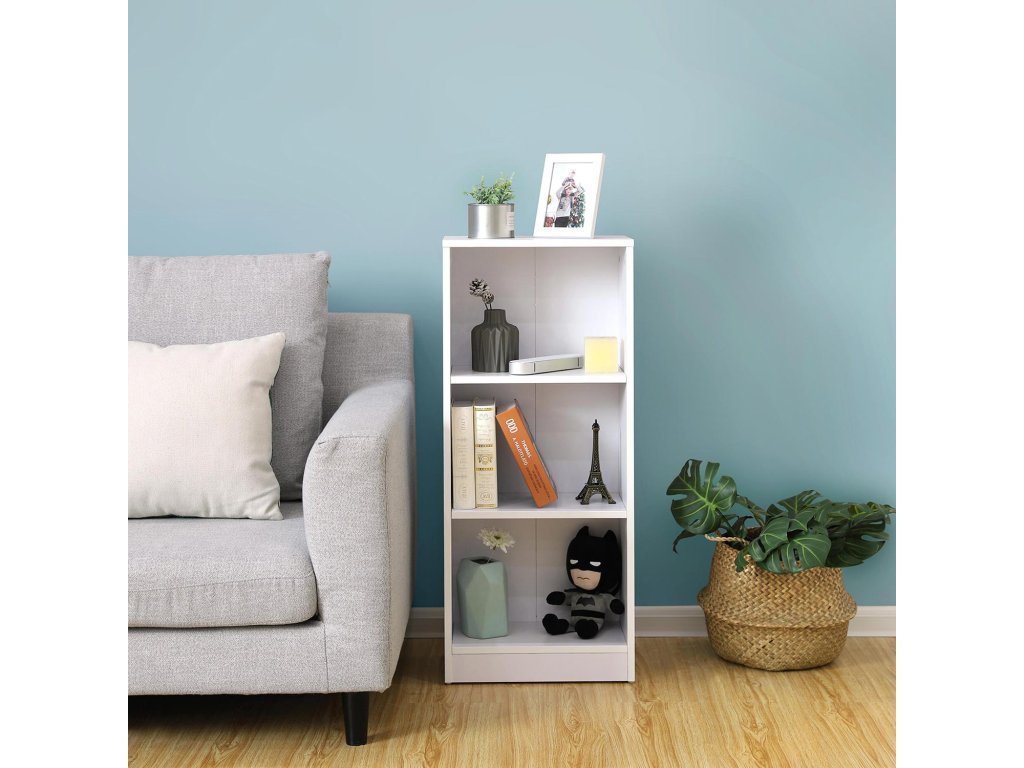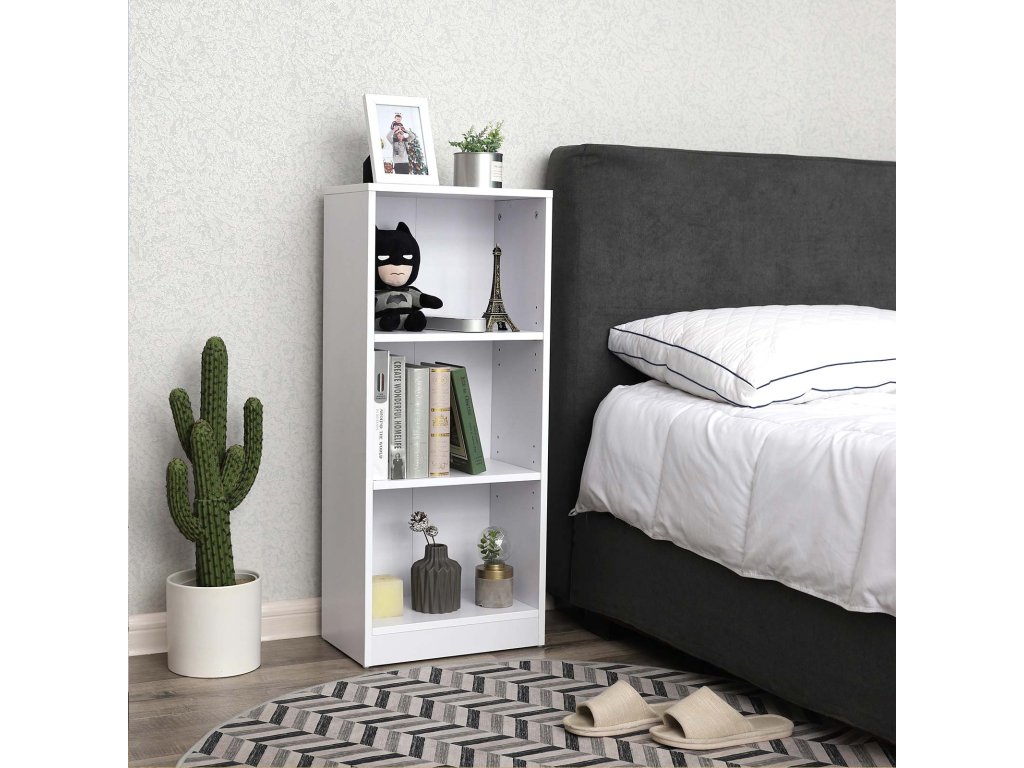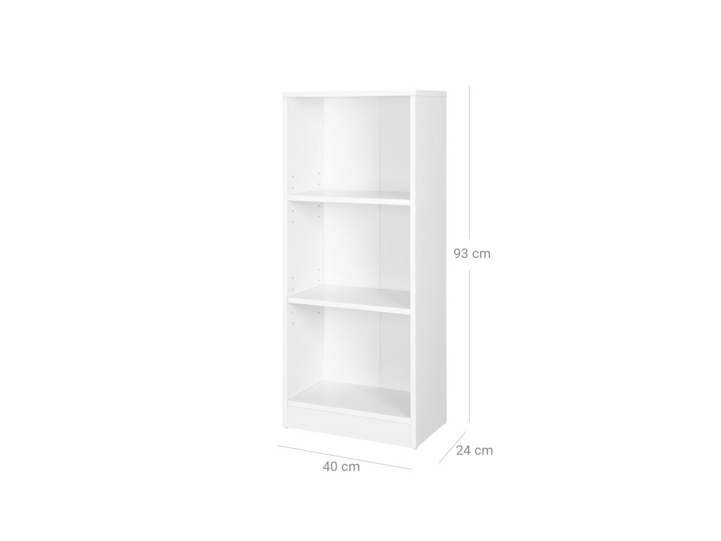 Třípatrová knihovna s nastavitelnými policemi, dětský regál a úložný prostor pro domácí kancelář, 40 x 24 x 93 cm, bílá.