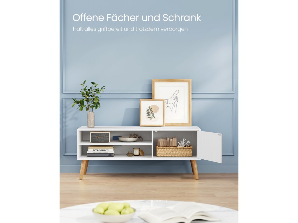 Pro televizory s úhlopříčkou až 55 palců Tento televizní regál s otevřenými policemi o rozměrech 40 x 120 x 49 cm pojme televizory s úhlopříčkou až 55 palců. Lze ji harmonicky začlenit do různých stylů interiéru [Dodatečná stabilita] Vysoce kvalitní dřevotřísková deska a robustní nohy z gumovníkového dřeva zajišťují vysokou stabilitu; tato skříňka na televizor unese až 100 kg [Pro přehledné vedení kabelů] Díky otvorům v zadním panelu můžete přehledně uspořádat kabely. Vytvořte si uklizený prostor pro televizor a vychutnejte si minimalistickou krásu tohoto televizního stojanu. [Moderní styl] Tento televizní stolek se šikmými nohami a bílým povrchem dodá vašemu obývacímu pokoji elegantní nádech;| Kategorie: | TV stolky |