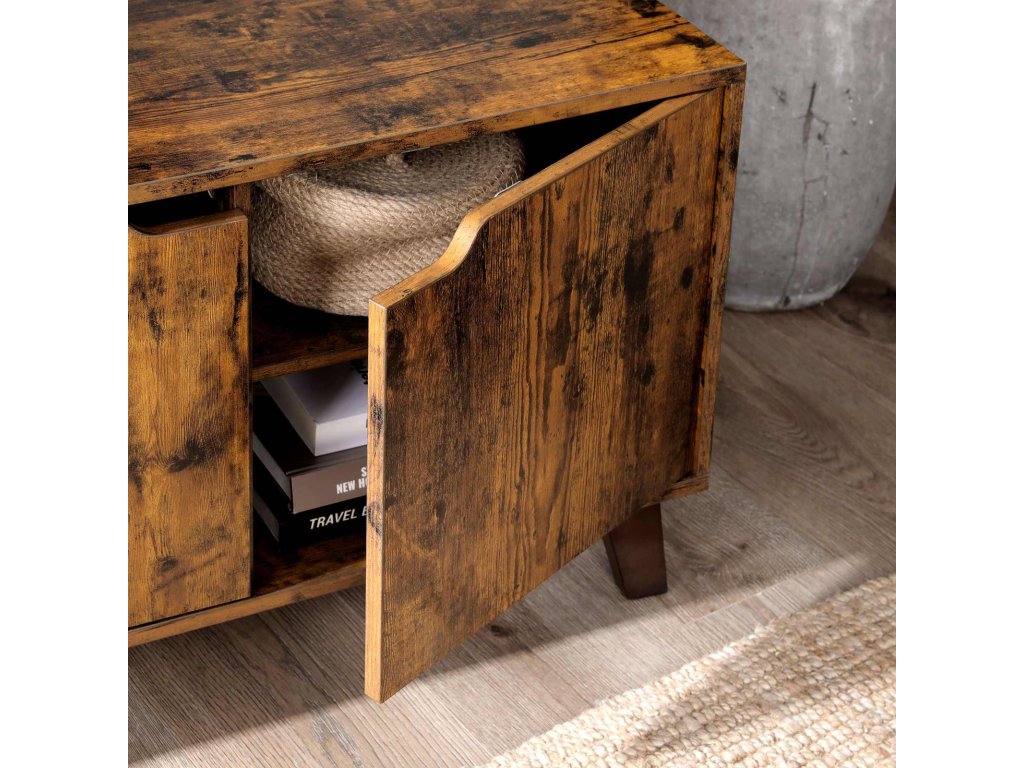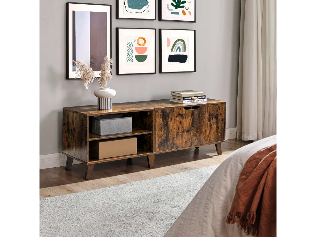 TV skříňka pro televizory do 60 palců, TV stolek se 2 dveřmi, nastavitelné police, TV stolek, do obývacího pokoje, jídelny, ložnice, rustikální hnědá.