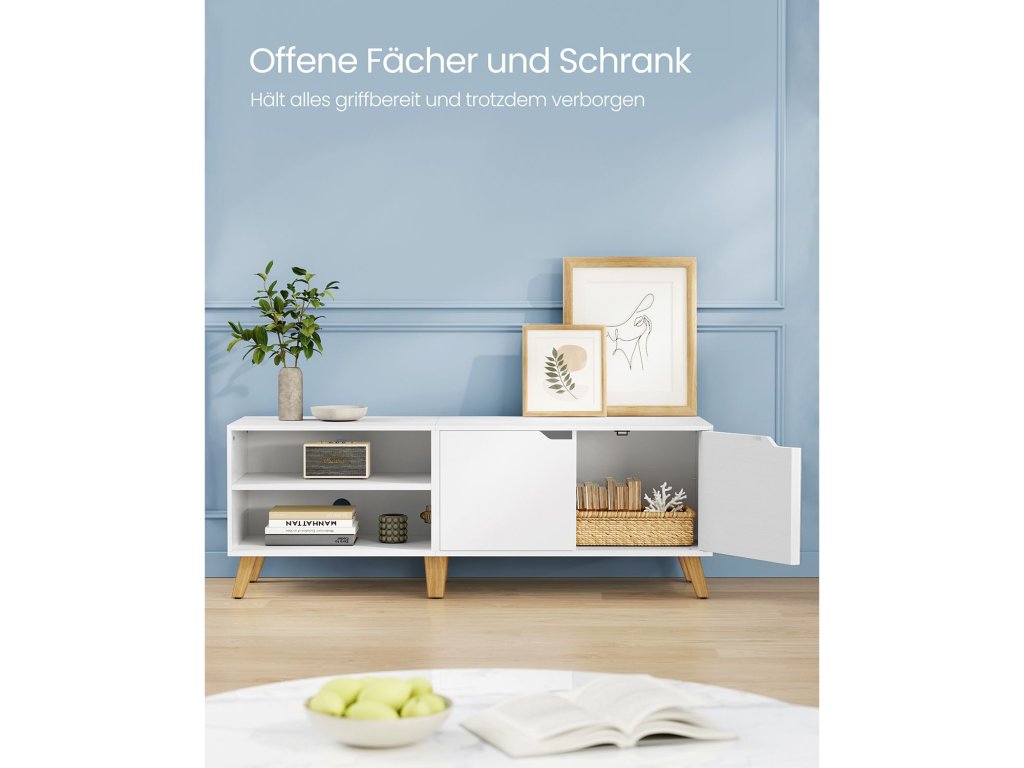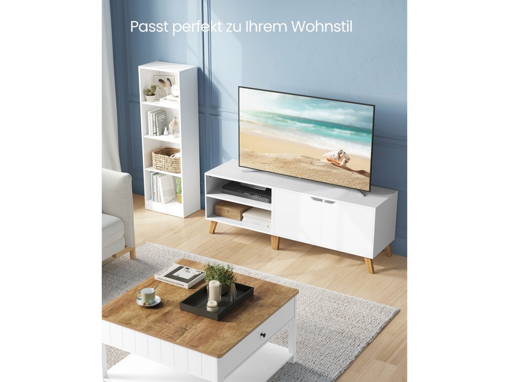 TV skříňka pro televizory do 65 palců, 140 cm široký televizní stolek se 2 dvířky, nastavitelné police, TV stolek, do obývacího pokoje, jídelny, ložnice, bílá.
