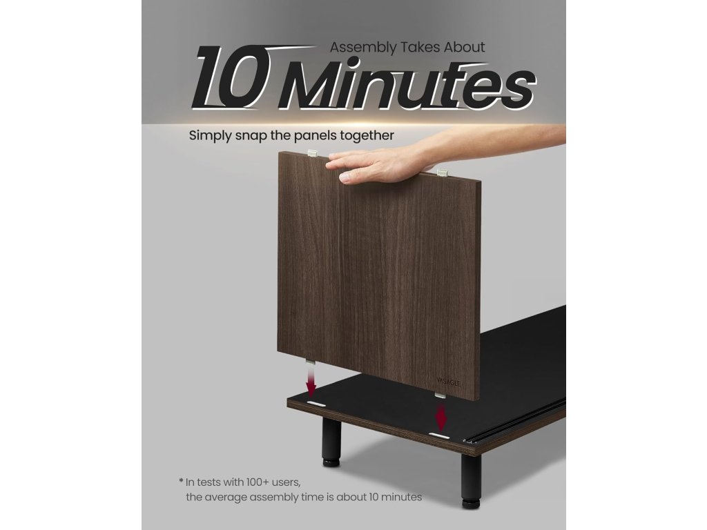 【SUPERRYCHLÁ, NENÁROČNÁ MONTÁŽ】 Tento televizní stojan sestavíte za pouhých 10 minut - bez použití nářadí. Díky vestavěným zámkovým konektorům se panely jednoduše zaklapnou. Rozlučte se s hodinami zdlouhavé montáže nebo tápání s četným příslušenstvím!.