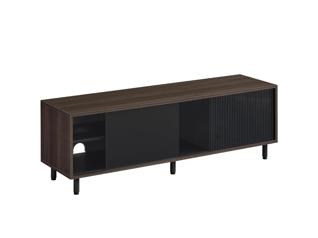 【INVITES MODERN LIVING】Moderní styl se s touto televizní skříňkou snoubí s pohodovým bydlením. Dvojí tón jasanově hnědé a inkoustově černé barvy působí elegantně a moderně, zatímco rýhované sklo vyzařuje jemnou, zamlženou atmosféru a vytváří příjemný prostor pro zábavu.