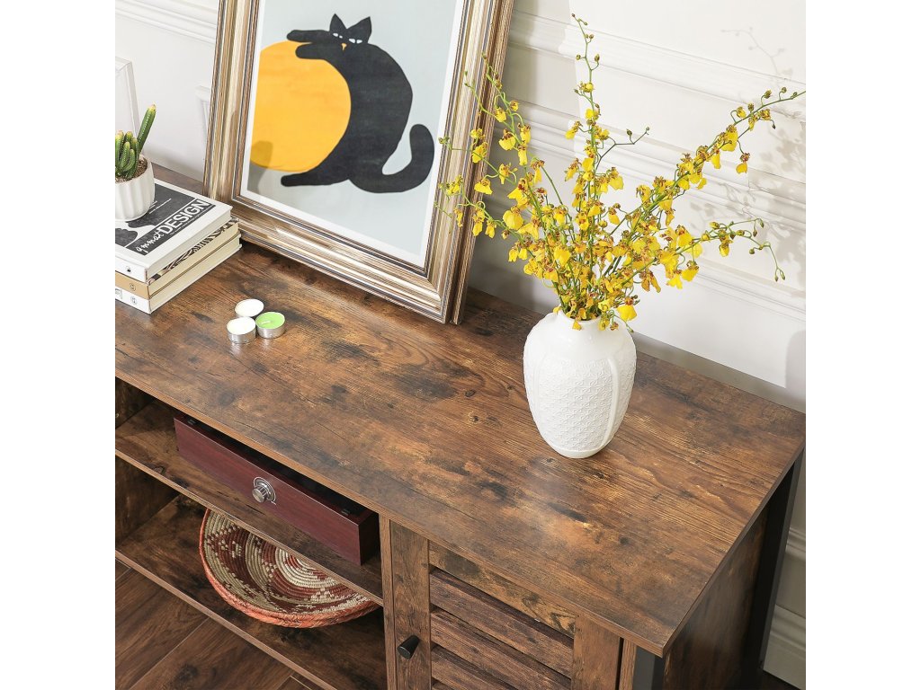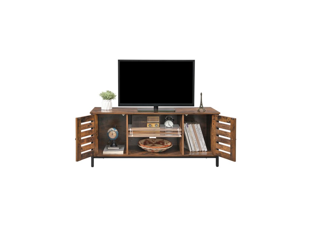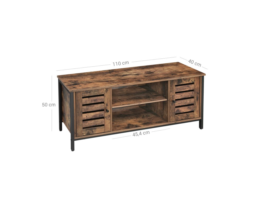 TV stolek s policemi, skříňka s úložným prostorem, dvířka s žaluziemi, do obývacího pokoje, zábavní místnosti, rustikální hnědá a černá.