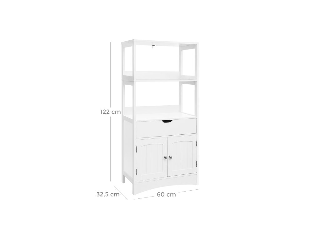 Šatník pro všechny příležitosti: Vždycky se s manželem bavíte o tom, které koupelnové doplňky zabírají nejvíce místa? Kuchyně - Hledáte místo pro své nové příbory? Obývací pokoj pokoj - obývací pokoj s mnoha větvemi? Skříň Songmics splní všechna vaše přání.Velká kapacita, ale kompaktní rozměry: 2 otevřené přihrádky na nejčastěji používané koupelnové pomůcky, jako je tělové mléko a holicí strojek; zásuvku a přihrádku za dvěma dveřmi na suché ručníky, toaletní papír apod.;Důležité: Robustní konstrukce z dřevovláknitých desek zajišťuje spolehlivou stabilitu a dlouhou životnost a ochrana proti převrácení zvyšuje bezpečnost při používání.Montáž - velmi snadná: díky srozumitelnému návodu není třeba být odborníkem na kutilství. s ilustrovaným návodem (čeština není zaručena) a očíslovanými díly můžete polici sestavit během chvilky.Songmics nabízí profesionální zákaznický servis před i po objednání. Nepřemýšlejte dlouho, prostě se do toho pusťte!