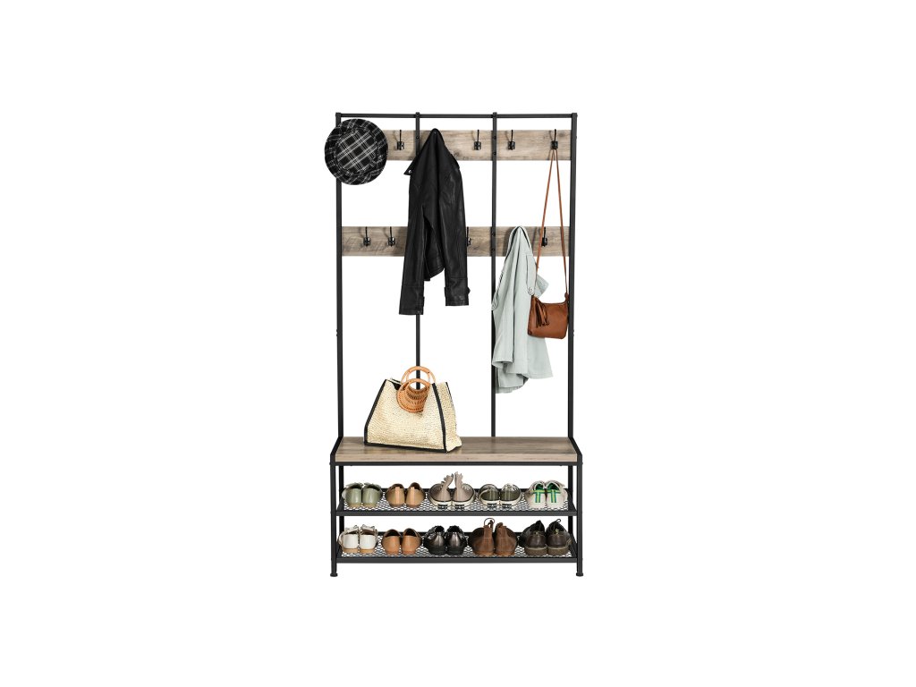 ELABORATIVNÍ KONSTRUKCE, JEDNODUCHÉ SESTAVENÍ: Díky jednoduché konstrukci předsíňového stromu a podrobnému návodu je montáž hotová dřív, než se nadějete (imbusový klíč a šroubovák jsou součástí balení).CO ZÍSKÁTE: Univerzální stojan na kabáty s háčky na kabáty a lavicí na boty, který vytvoří příjemnější vstupní prostor a nabídne místo k sezení při přezouvání.| Kategorie: | Předsíňové stěny |