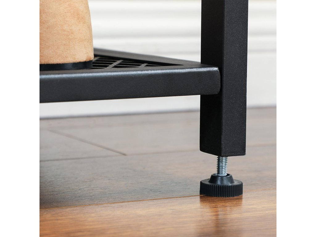 Sladěné: Černý ocelový rám a béžové dřevěné akcenty tohoto stojanu na kabáty tvoří harmonickou kombinaci, která dělá z tohoto funkčního předsíňového stromu něco výjimečného.ZDE STOJÍ FUNKČNÍ TALENT: Nejenže má 2 kolejničky s 12 různě rozmístěnými háčky na kabáty, ale dvě robustní síťované police slouží také jako botník. Sedák o tloušťce 30 mm navíc zajišťuje skvělou stabilitu při sezení a obouvání.NĚCO JINÉHO? Tato stylová jednotka se hodí nejen jako stojan na oblečení a lavice na boty v předsíni, ale dodá kosmopolitní nádech každé kanceláři; hodí se i do prostorné ložnice v industriálním stylu;