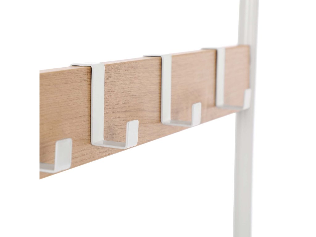 Věšák na kabáty, stojan na kabáty s lavicí na boty, design 4 v 1, 9 odnímatelných háčků, tyč na oblečení, do předsíně, vchod, 33,7 x 77 x 183 cm, moderní, dub a krémová barva.