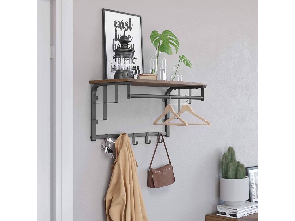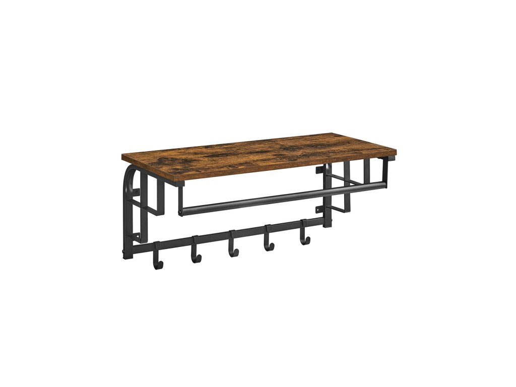 Věšák na kabáty na stěnu, háček s 5 háčky, závěsná lišta, univerzální pro vstupní chodbu Ložnice Koupelna Obývací pokoj, rustikální hnědá a černá.