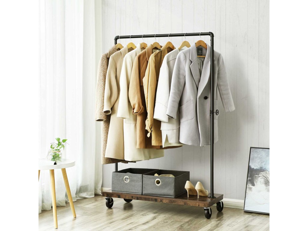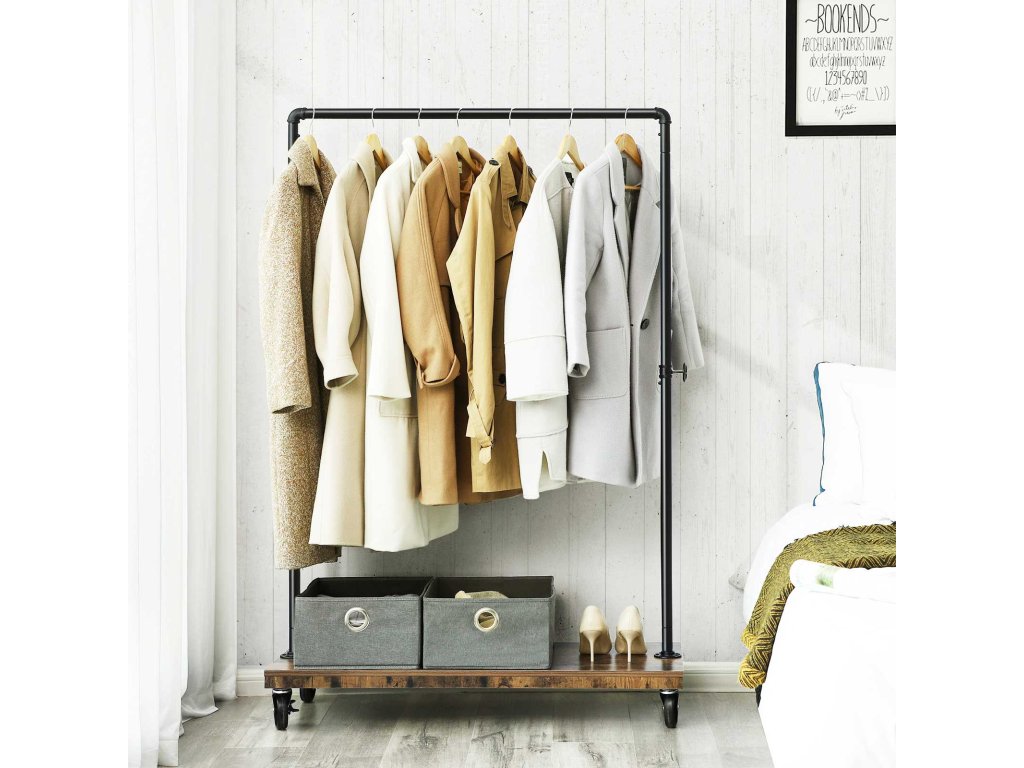 Žádná bitva s prostorem pro skříně: Praská vaše skříň ve švech? Tato tyč na šaty vám může ulehčit práci ve skříni a pomoci zachránit vaše milované šaty z hromad oblečení.Předveďte se: Pozvěte tento závěsný regál s průmyslovým designem trubek a rustikální policí do svého domova, aby ozvláštnil váš prostor a zároveň nabídl další úložný prostor; je tak atraktivní, že byste ho neradi schovávali a přišli o komplimenty;Jako pojízdná skříň: Tento přenosný stojan na oblečení stačí přisunout k zrcadlu a najít ten správný oděv; 2 brzdy ji udrží na místě;Má sílu: Na tento věšák můžete bez obav pověsit oblečení, které potřebujete na celou sezónu, protože nosnost 90 kg zajistí, že bude mít stabilní domov; atraktivní police navíc unese až 25 kg;Snadná montáž: Označené díly? Zkontrolujte. Podrobný návod? Zkontrolováno. Jednoduchý postup montáže? Ano! Pak vám sestavení této oděvní lišty nebude připadat jako druhá práce - pojďme na to.
