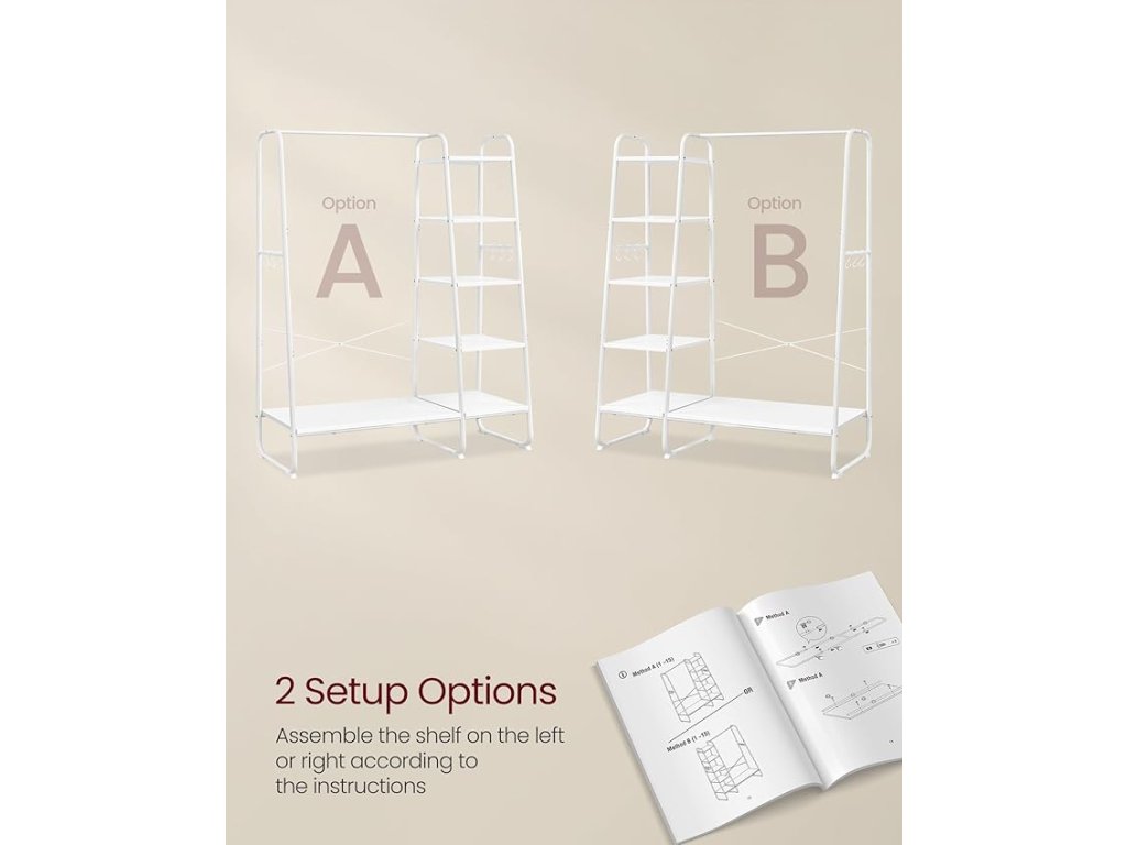Věšák na oděvy s poličkou na boty, pětiúrovňový úložný regál, 6 bočních háčků, do ložnice, obývacího pokoje, bílý mrak a matná bílá.