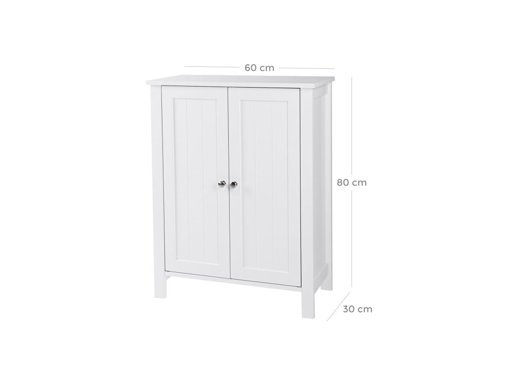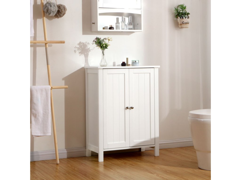 Volně stojící skříňka do koupelny se 2 dveřmi a 2 nastavitelnými policemi, bílá.