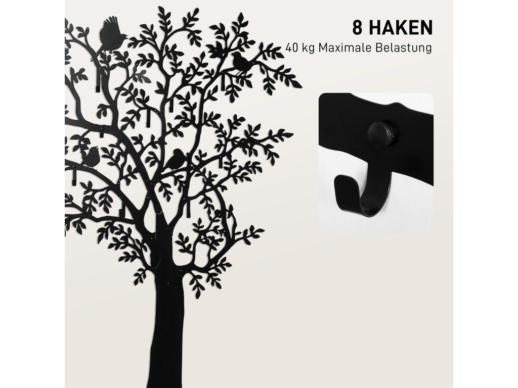 Proměňte svůj domov s nástěnným věšákem na kabáty inspirovaným stromem, který zdobí čtyři rozkošní ptáčci. Osm háčků poskytuje dostatek prostoru pro vše od klíčů až po pláštěnky, takže je ideální do chodeb, obývacích pokojů, ložnic a kuchyní. Nástěnný design šetří místo a udržuje pořádek. Vneste do svých obytných prostor nádech přírody s věšákem na kabáty.