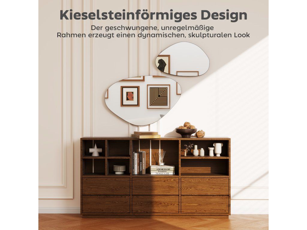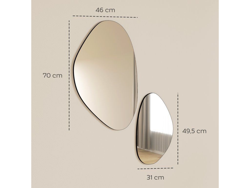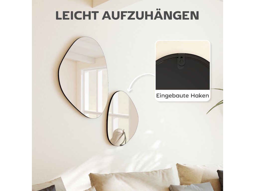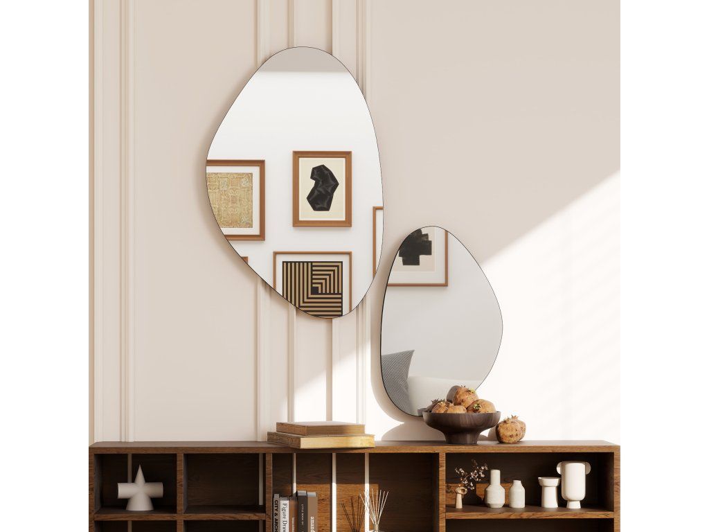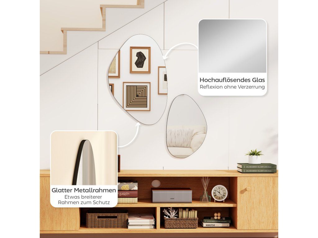Stylové do každé místnosti: Tato zrcadla nepravidelného tvaru jsou ideální do obývacích pokojů, ložnic, chodeb nebo vstupních prostor a dodávají každému prostoru osobní nádech a umělecké kouzlo a vytvářejí teplou a příjemnou atmosféru.
