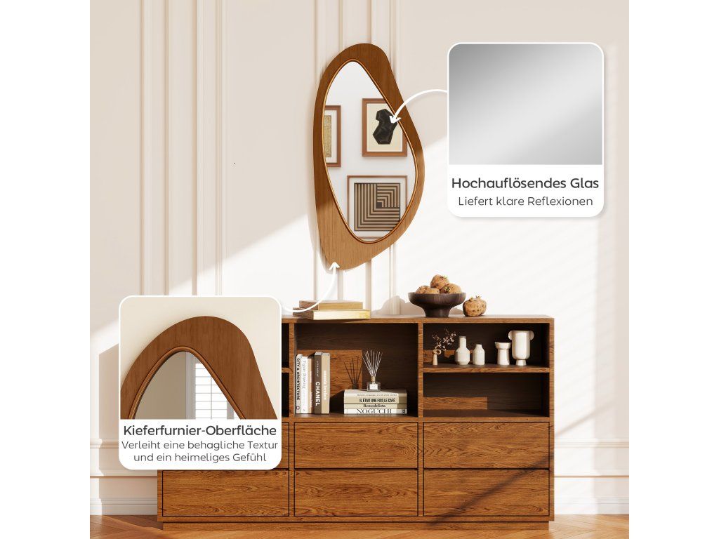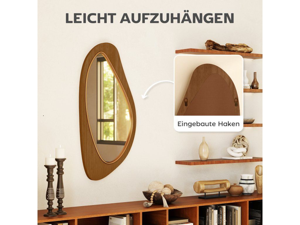 Umělecký design: Výrazné, plynulé křivky a přirozené linie dělají z tohoto zrcadla do předsíně skutečný poutač a stylový ústřední prvek vaší předsíně, obývacího pokoje nebo ložnice.