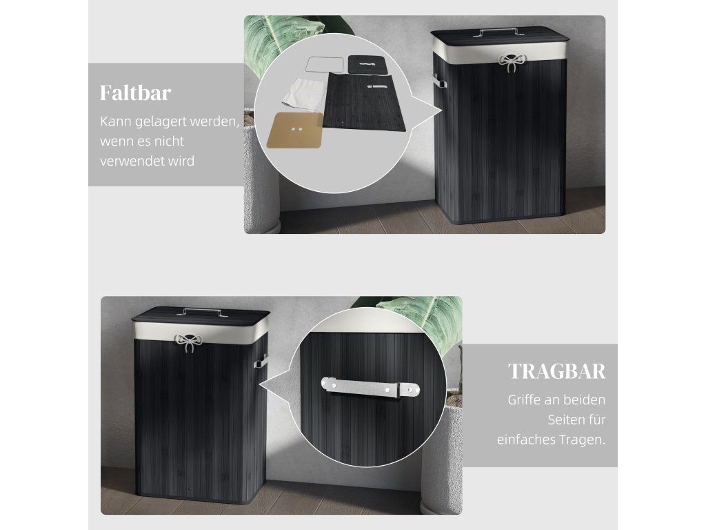 ✔ Koš na prádlo vyrobený z pravého bambusového dřeva.