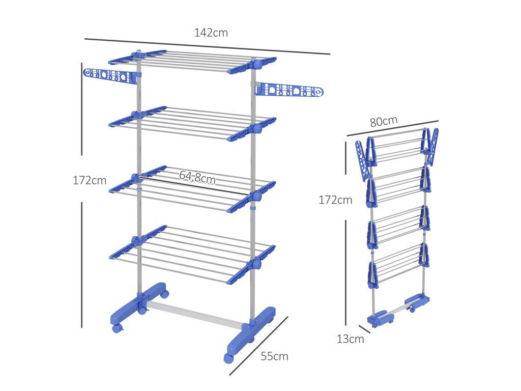 Sušák na prádlo 142 x 55 x 172 cm | modro-stříbrný