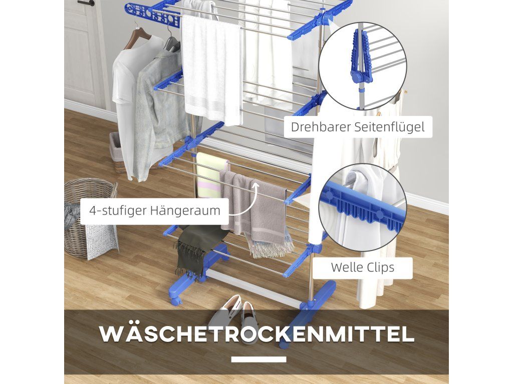 Mobilní sušicí stojan: Sušící plocha je ideální pro sušení oblečení a ponožek, sušení a větrání ručníků a ukládání prádla v pokojích pro hosty a na půdách. Vhodné pro vnitřní použití.
