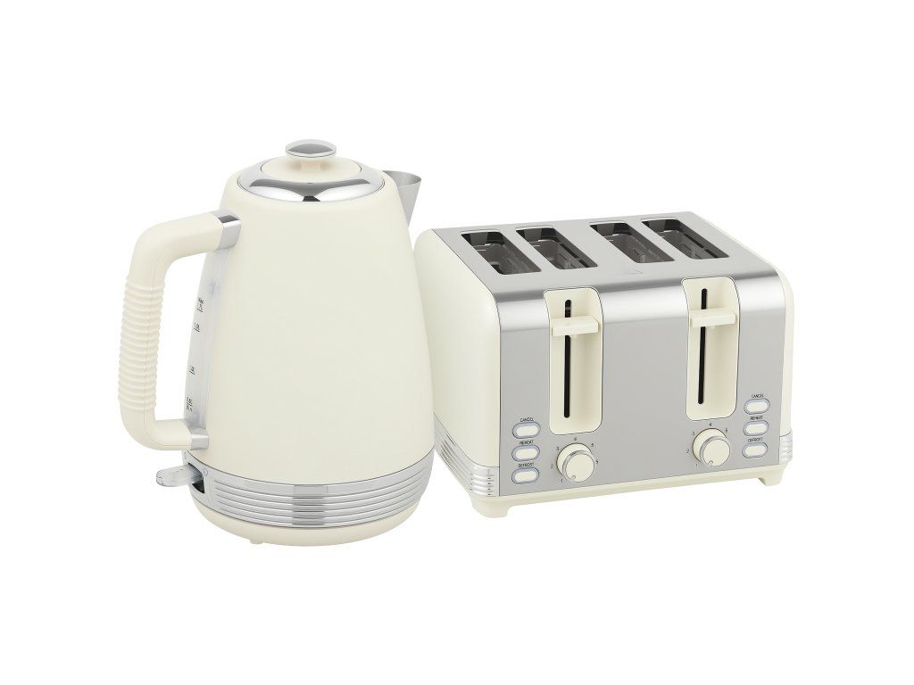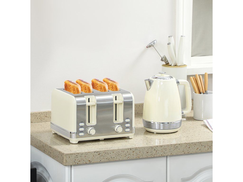 ✔ Tato snídaňová sada obsahuje konvici a toustovač na 4 plátky v odpovídajícím stylu.