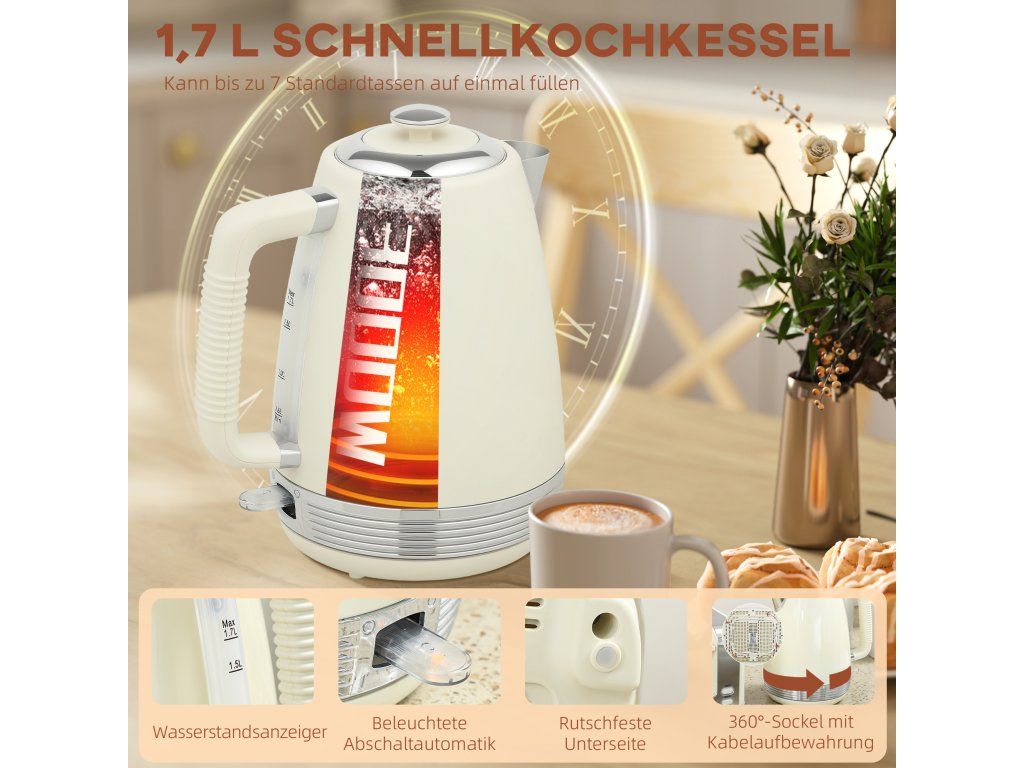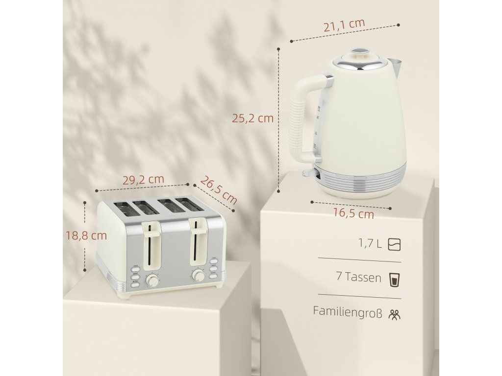 - ✔ Das Frühstücksset beinhaltet einen Wasserkocher und einen 4-Scheiben-Toaster im einheitlichen Stil