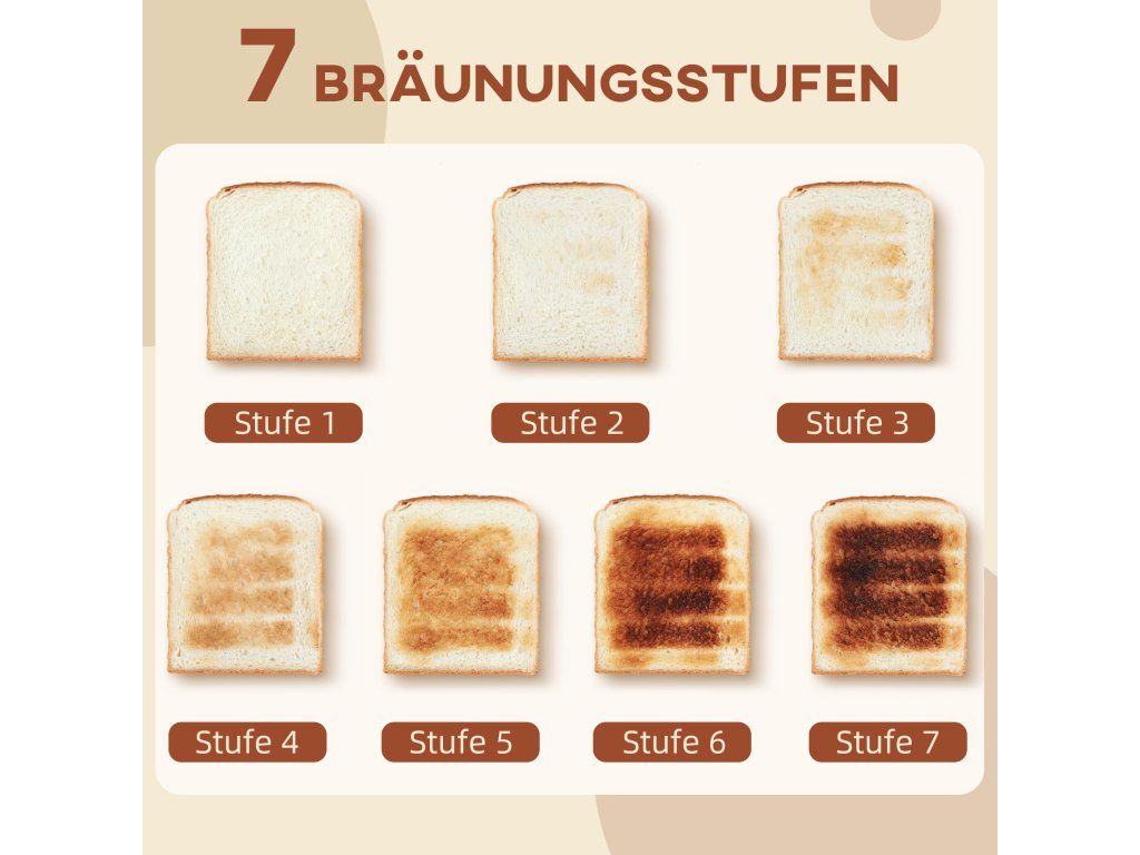 - ✔ 4 Schlitze mit Doppelsteuerungen, jedes Paar mit 7 Bräunungsstufen sowie Auftau-, Aufwärm- und Abbruchfunktion