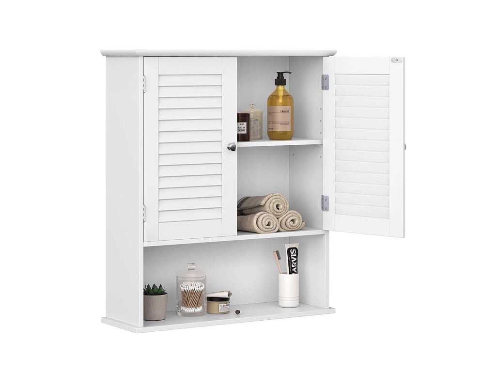 SE O TO BUDE SNAŽIT KAŽDÝ POKOJ: Dveře s dvojitými okenicemi, elegantní korpus z MDF třídy E1 a 2 chromované kovové knoflíky. tato jednoduchá, ale moderní koupelnová skříňka se dokonale hodí do koupelny, obývacího pokoje, předsíně nebo jiné místnosti.BEZPROBLÉMOVÉ SKLADOVÁNÍ: Vnitřní police má 5 výškových nastavení, která uspokojí vaše potřeby; 1 otevřená polička umožňuje rychlý přehled a nabízí ideální místo pro lahvičku s parfémem nebo nejčastěji používané předměty;JEDNODUCHÁ MONTÁŽ: Montáží této praktické nástěnné skříňky nemusíte trávit hodiny - díky několika krokům a podrobnému návodu ji připravíte během chvilky.JEŠTĚ NEJSTE SPOKOJENI? VASAGLE vám poskytne profesionální zákaznický servis před nákupem i po něm; doplňte svůj domov touto vysoce kvalitní zrcadlovou skříňkou.