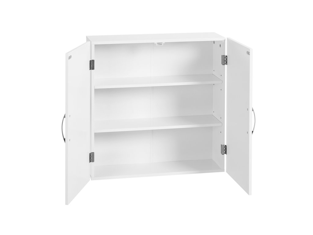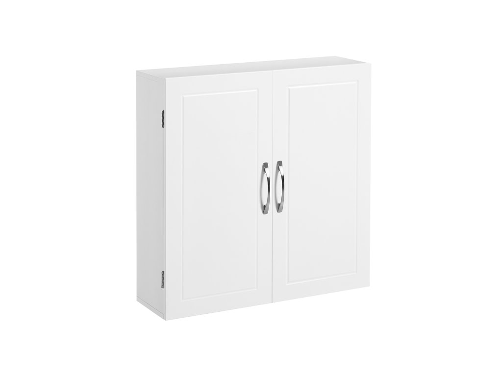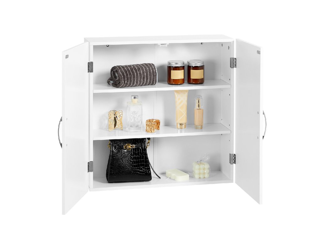 Závěsná koupelnová skříňka, skříňka na léky s nastavitelnými policemi, dvojité dveře, 60 x 18 x 60 cm, skandinávský severský styl, matná bílá.