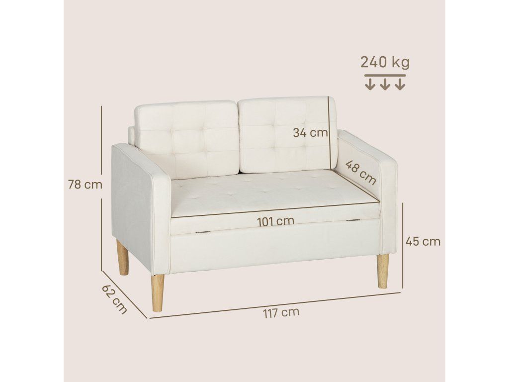 Dvoumístná pohovka s úložným prostorem 117 x 62 x 78 cm | krémově bílá