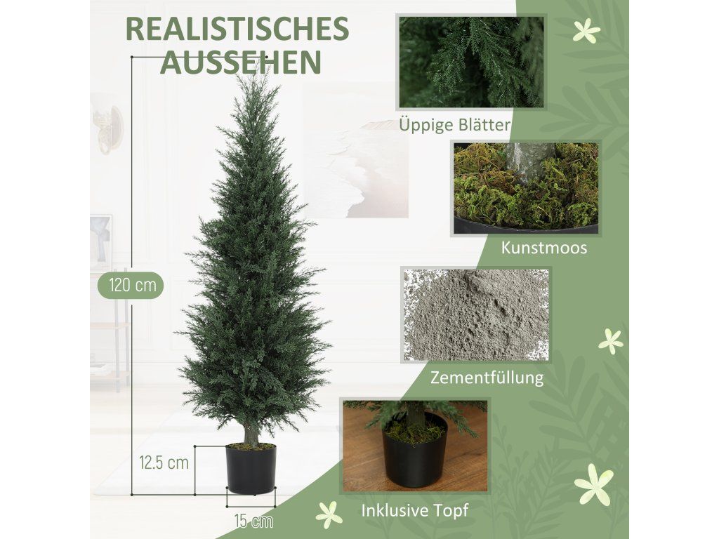 Vneste do svého prostoru trvalou zeleň s umělou rostlinou. Tyto neuvěřitelně realistické repliky cypřišů dosahují výšky 120 cm a dodávají se s listy v klasických dětských květináčích. Snadno se o ně pečuje a nevyžadují žádné zahradnické dovednosti! Navíc jsou odolné vůči UV záření a ideální pro rozjasnění interiéru i exteriéru.
